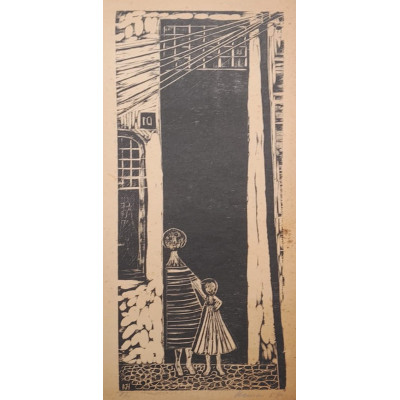 Hansen Bahia - Mae e Filha - Xilogravura - 58 alt x 24 larg (cm) - acid - 1954 - 8/10