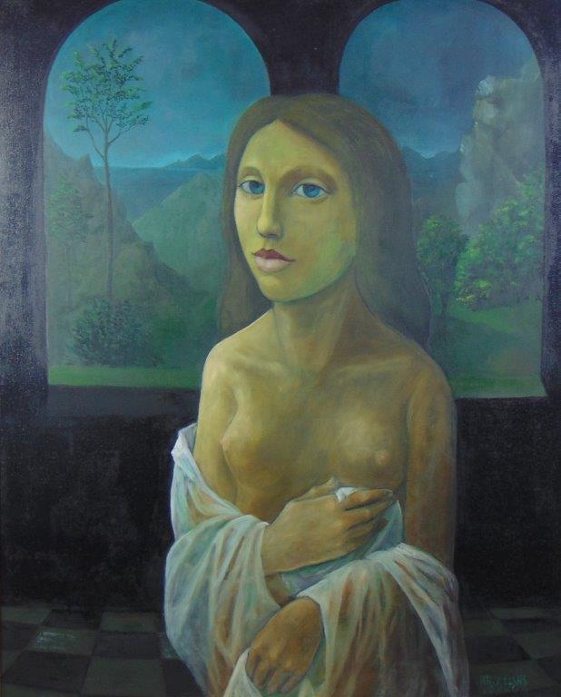 Harry Elsas - Casarios à beira do rio. Óleo sobre tela, 65x100 cm, 1981, A.C.I.D. Sem moldura