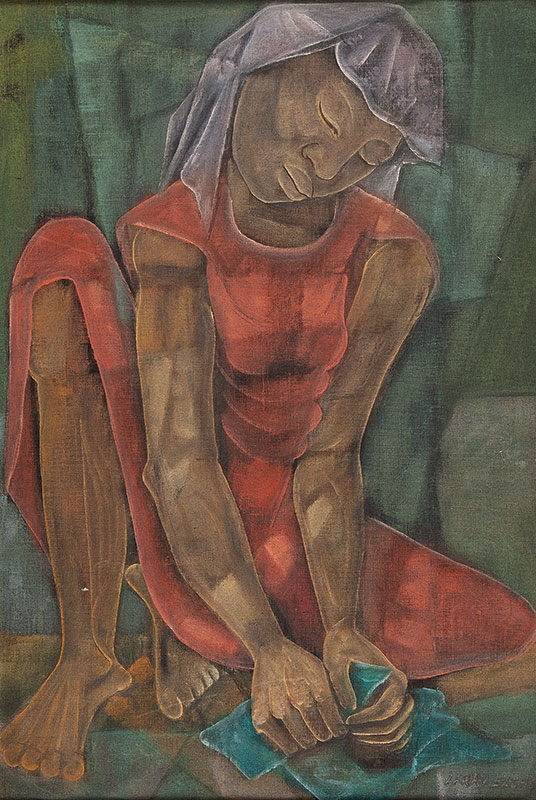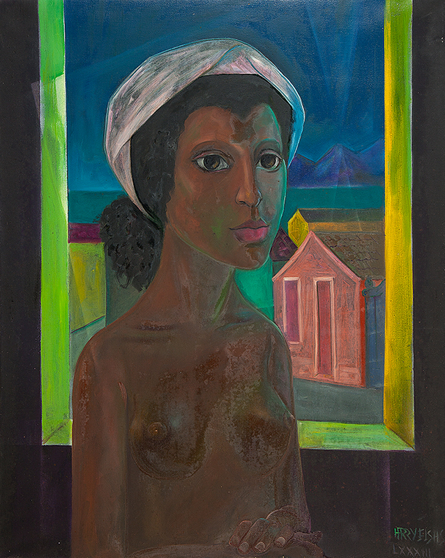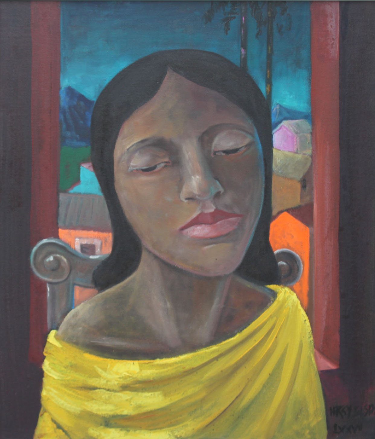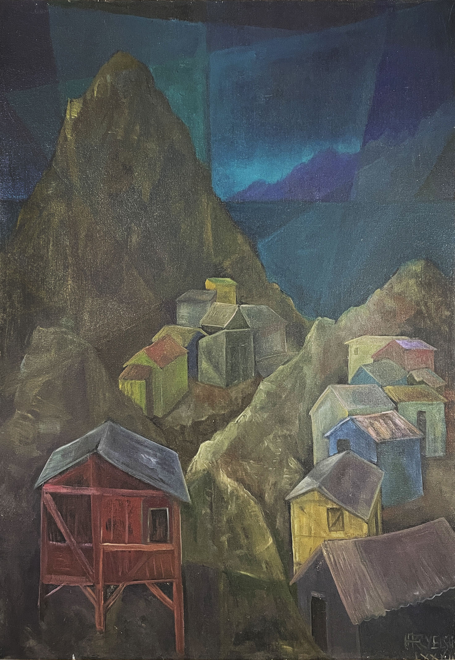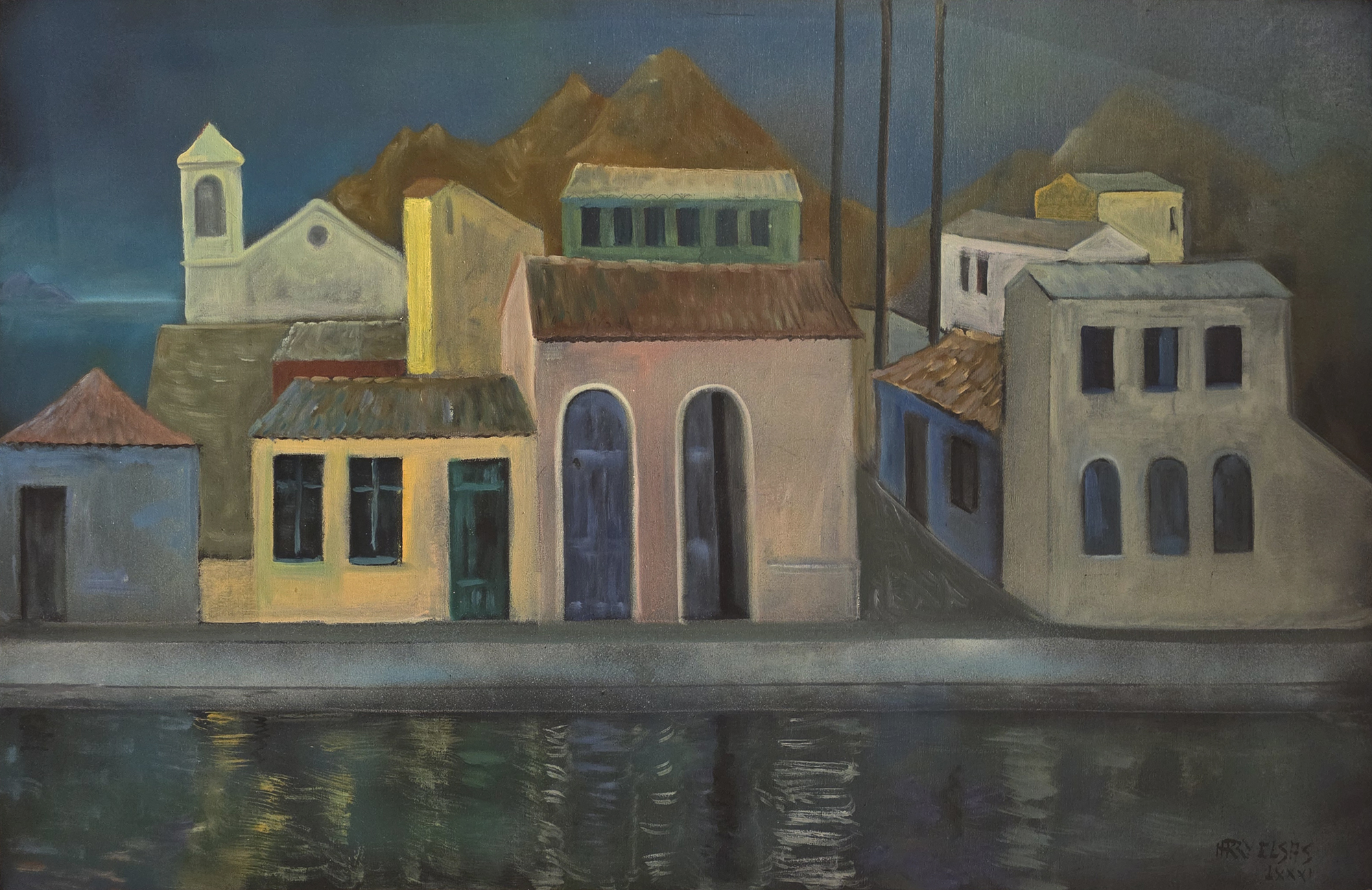 Harry Elsas - Casarios à beira do rio. Óleo sobre tela, 65x100 cm, 1981, A.C.I.D. Sem moldura
