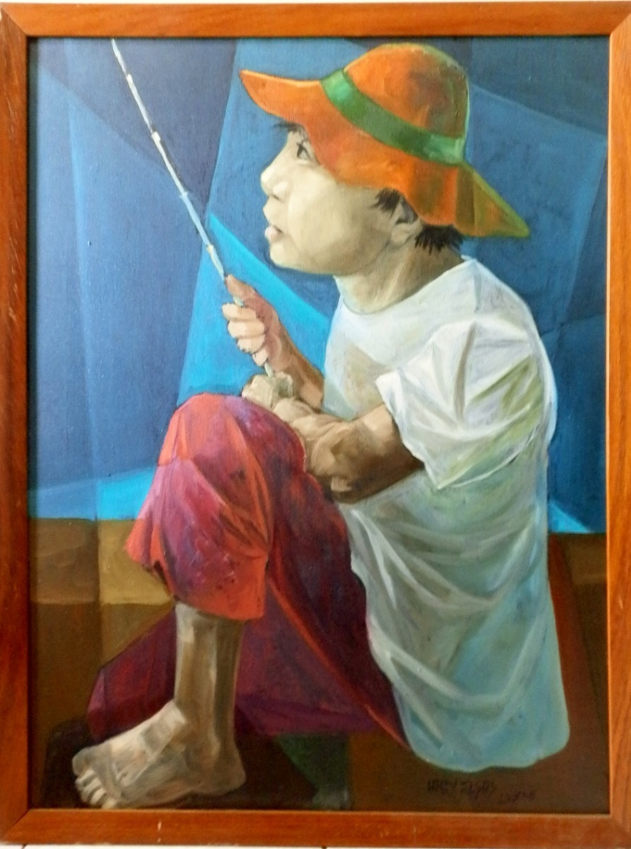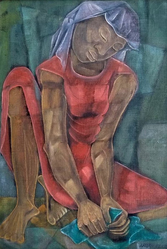 Harry Elsas - Casarios à beira do rio. Óleo sobre tela, 65x100 cm, 1981, A.C.I.D. Sem moldura