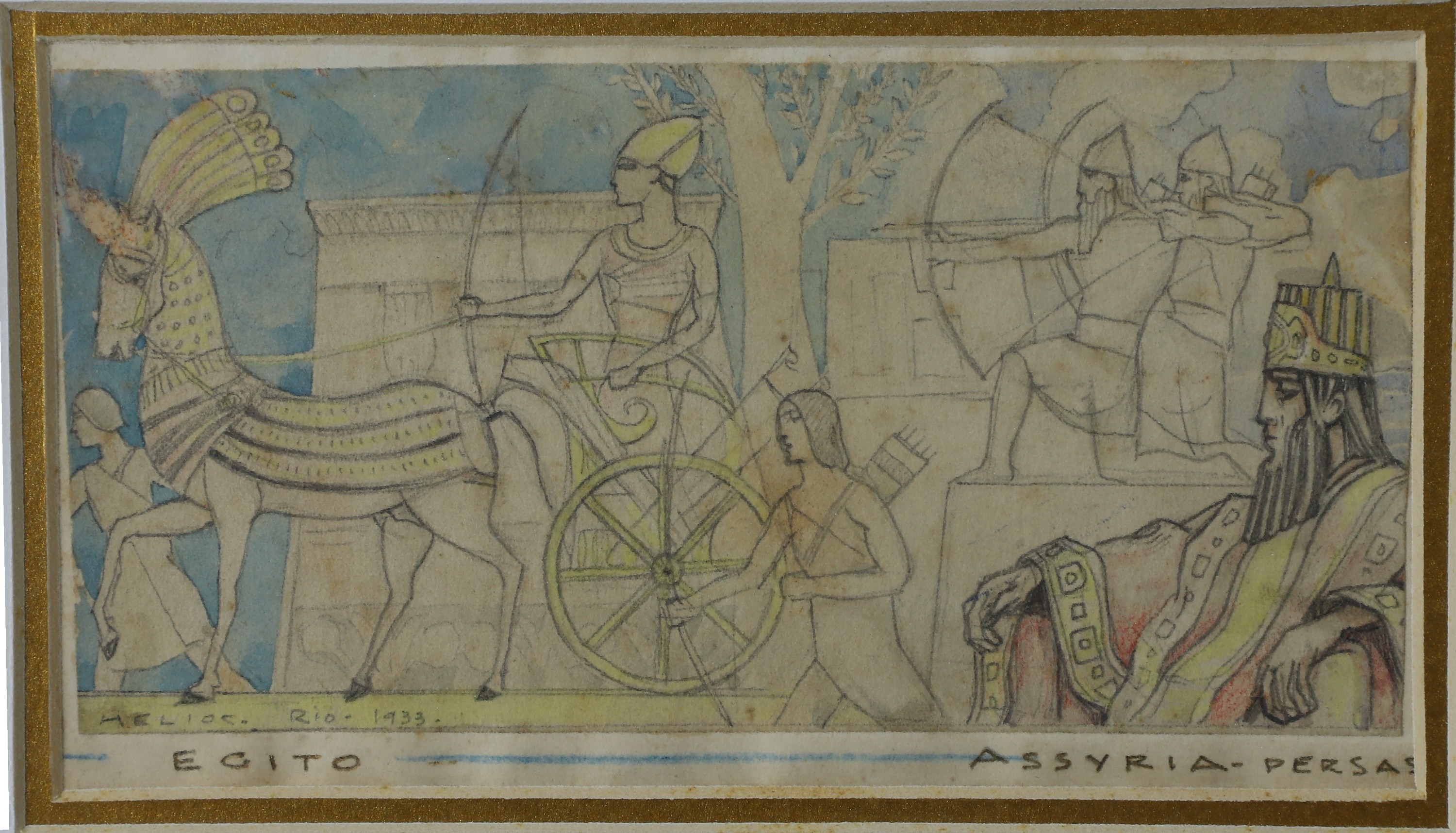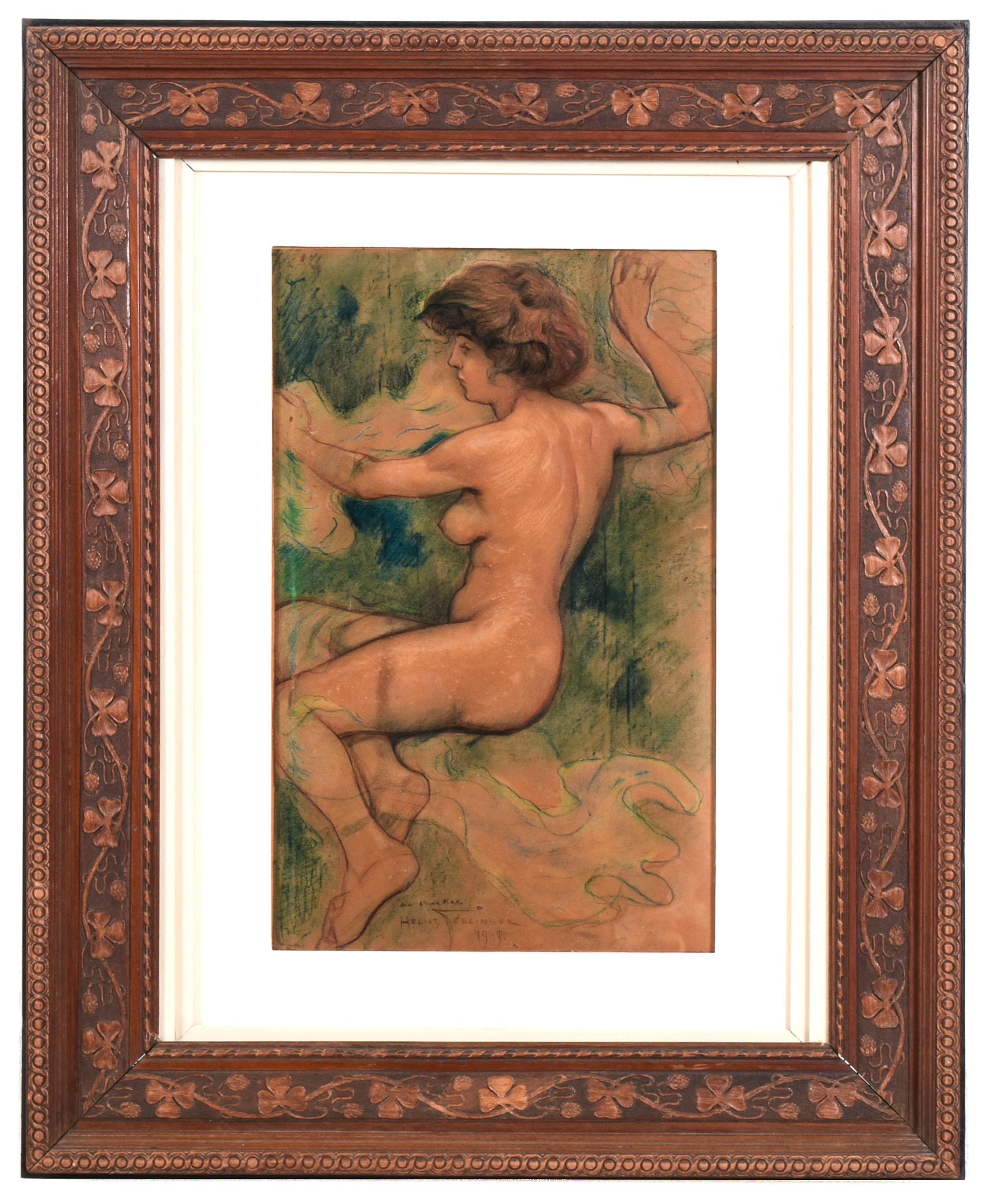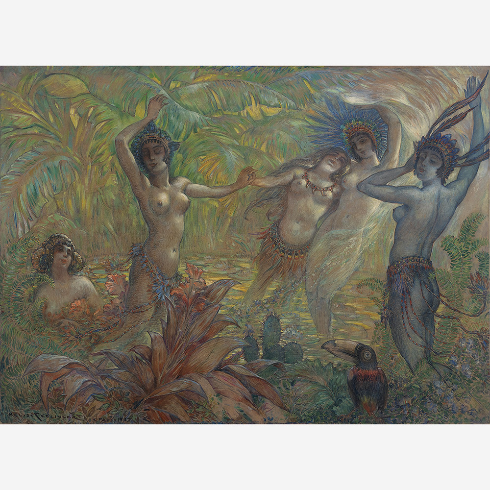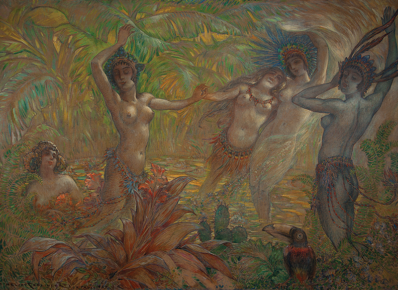 HELIOS SEELINGER, Ninfas, Técnica Mista sobre Papel, ACID, 20 x 26cm (m.i). Datado 1920