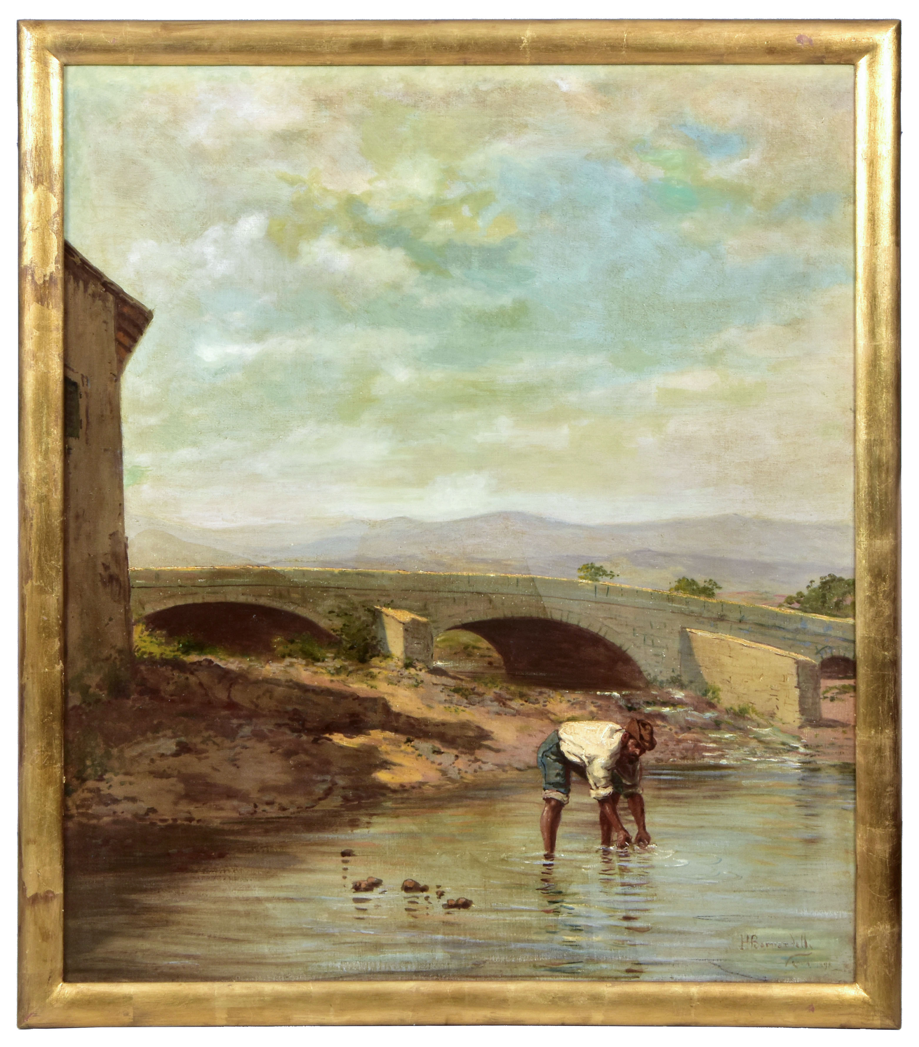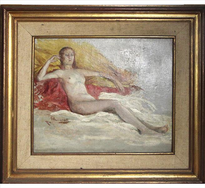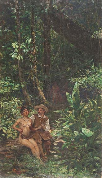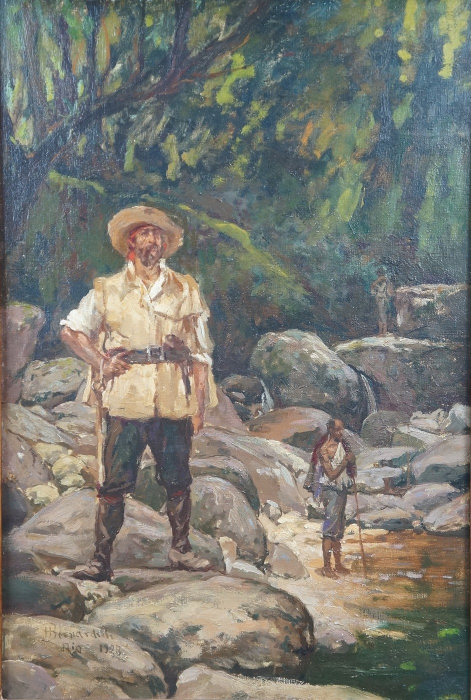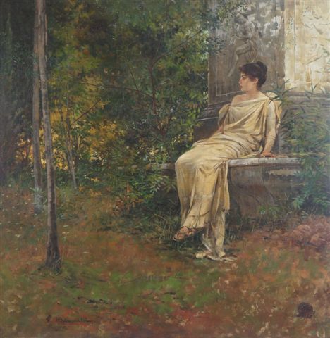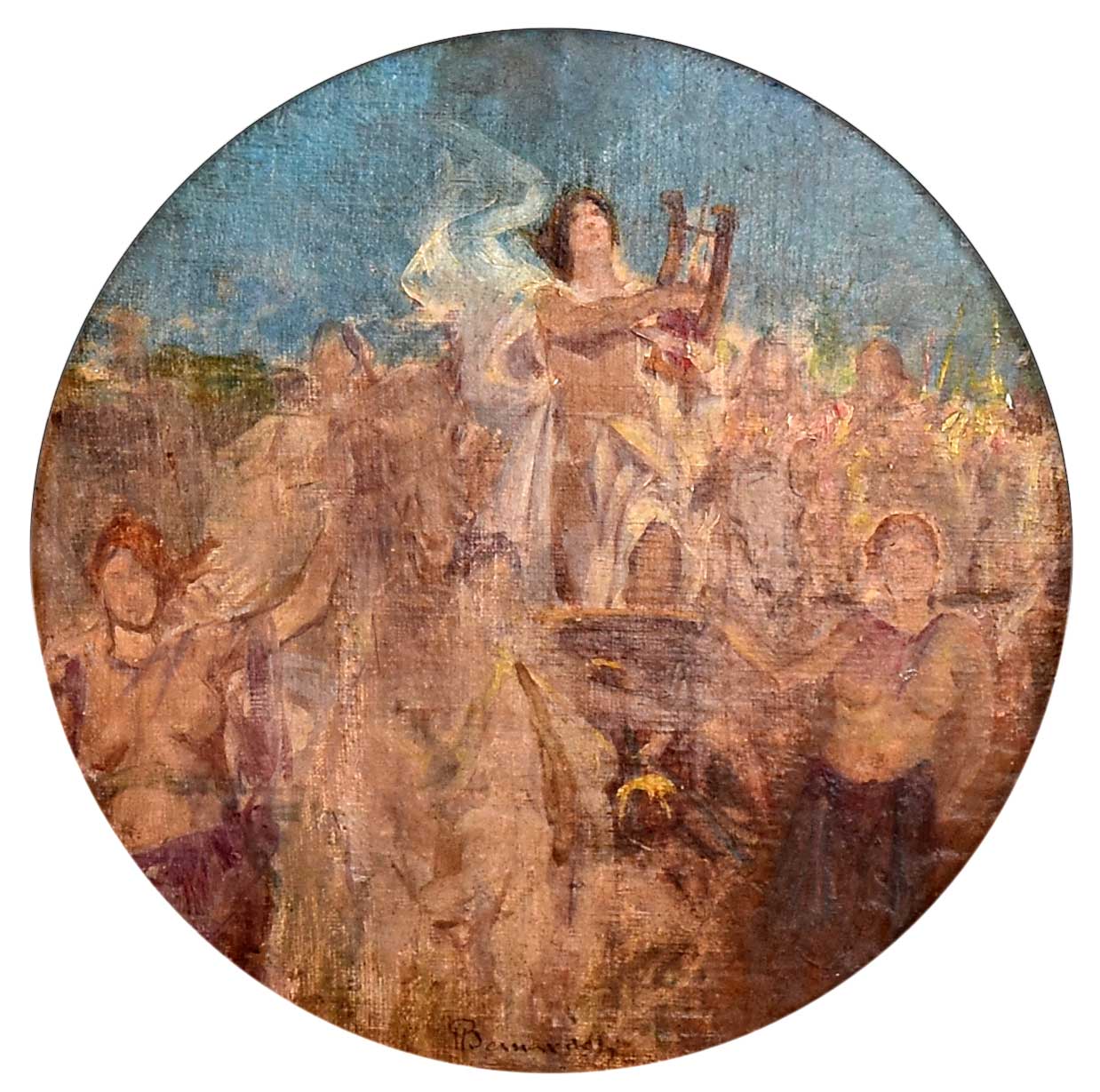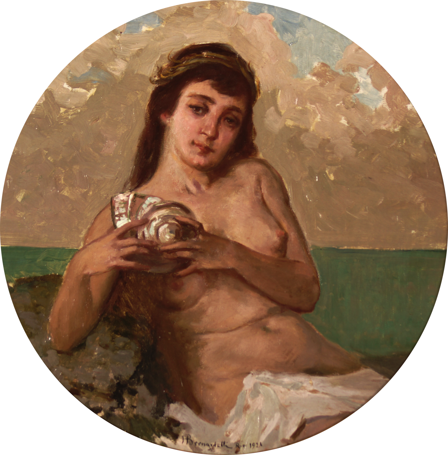 Henrique Bernardelli (Valparaíso, Chile 1858 - Rio de Janeiro RJ 1936). Pintor, desenhista, gravador, professor. Irmão do escultor Rodolfo Bernardelli (1852-1931) e do violonista e pintor Felix Bernadelli (1862-1905). Chega com a família ao Brasil  no começo da década de 1860, se estabelecendo no Rio Grande do Sul. Em 1867, transfere-se para o Rio de Janeiro. Três anos depois, matricula-se na Academia Imperial de Belas Artes (Aiba), juntamente com o irmão Rodolfo. É aluno de Zeferino da Costa (1840-1915), Agostinho da Motta (1824-1878) e Victor Meirelles (1832-1903). Viaja para a Itália em 1878. Em Roma, freqüenta o ateliê de Domenico Morelli (1826-1901) com quem estuda até 1886.  Volta ao Brasil no mesmo ano, realiza no Rio de Janeiro uma exposição individual que causa interesse e polêmica no meio local. São apresentadas, entre outras obras, Tarantela (1886), Maternidade (1878), Messalina (1880), Modelo em Repouso(ca.1881) e Ao Meio Dia.