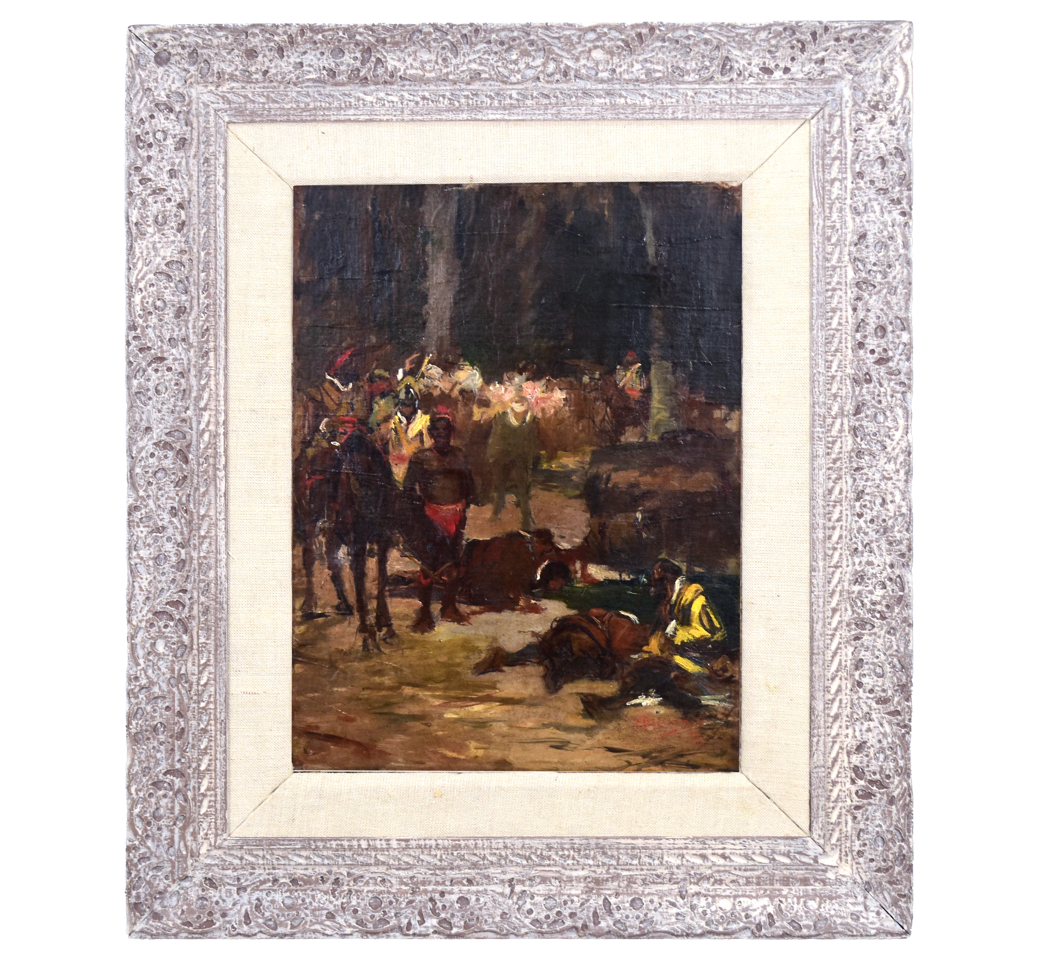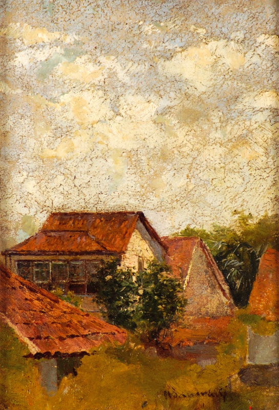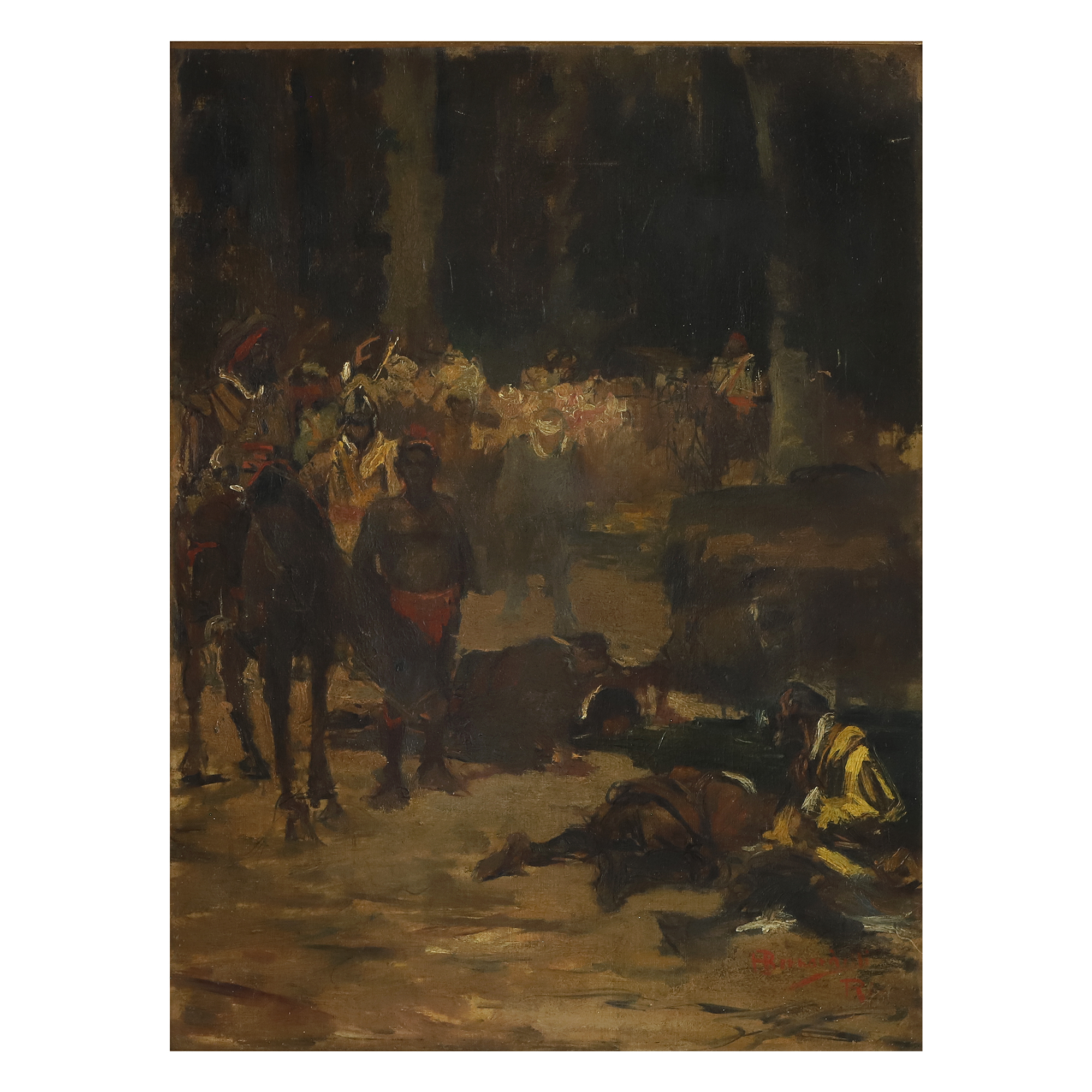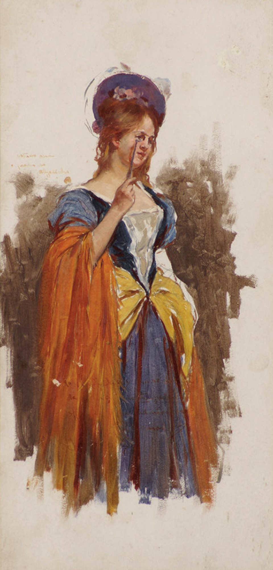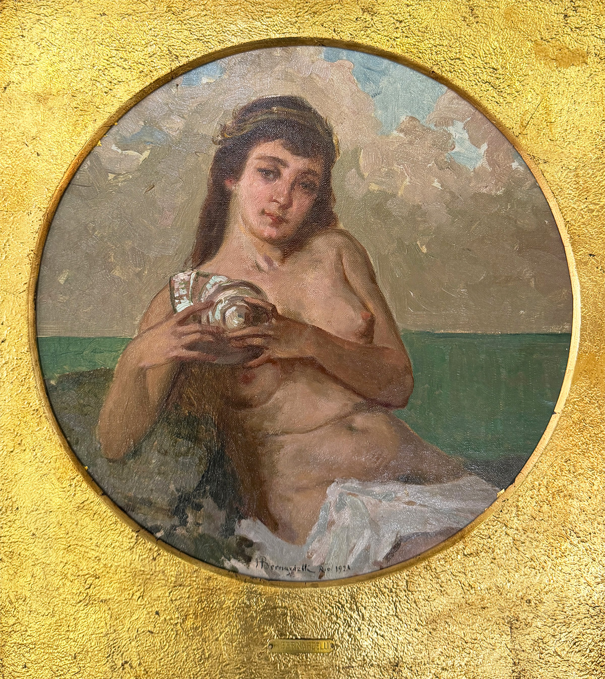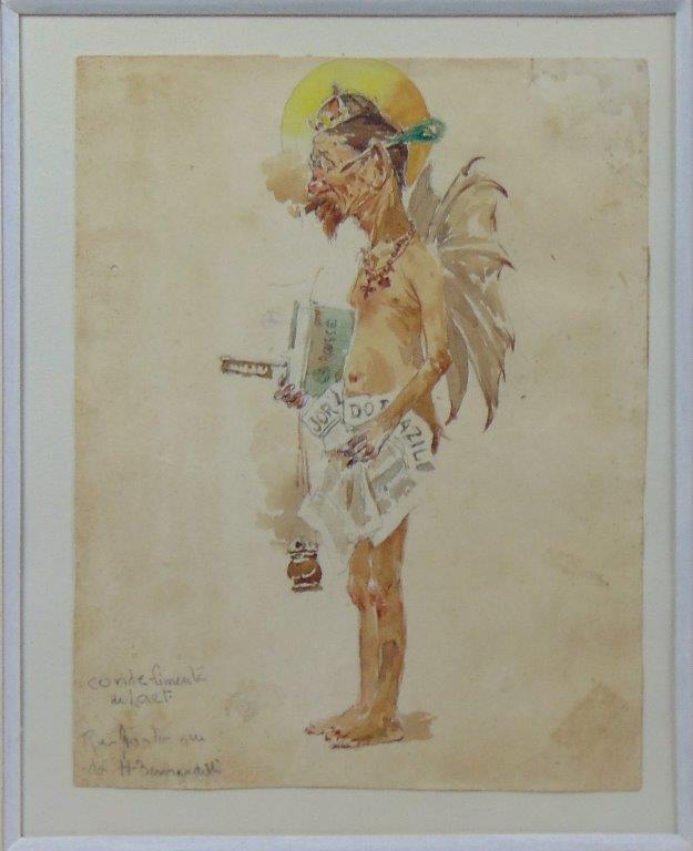 Henrique Bernardelli (Valparaíso, Chile 1858 - Rio de Janeiro RJ 1936). Pintor, desenhista, gravador, professor. Irmão do escultor Rodolfo Bernardelli (1852-1931) e do violonista e pintor Felix Bernadelli (1862-1905). Chega com a família ao Brasil  no começo da década de 1860, se estabelecendo no Rio Grande do Sul. Em 1867, transfere-se para o Rio de Janeiro. Três anos depois, matricula-se na Academia Imperial de Belas Artes (Aiba), juntamente com o irmão Rodolfo. É aluno de Zeferino da Costa (1840-1915), Agostinho da Motta (1824-1878) e Victor Meirelles (1832-1903). Viaja para a Itália em 1878. Em Roma, freqüenta o ateliê de Domenico Morelli (1826-1901) com quem estuda até 1886.  Volta ao Brasil no mesmo ano, realiza no Rio de Janeiro uma exposição individual que causa interesse e polêmica no meio local. São apresentadas, entre outras obras, Tarantela (1886), Maternidade (1878), Messalina (1880), Modelo em Repouso(ca.1881) e Ao Meio Dia.