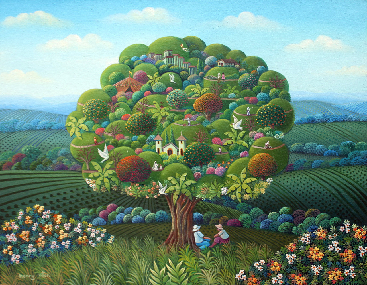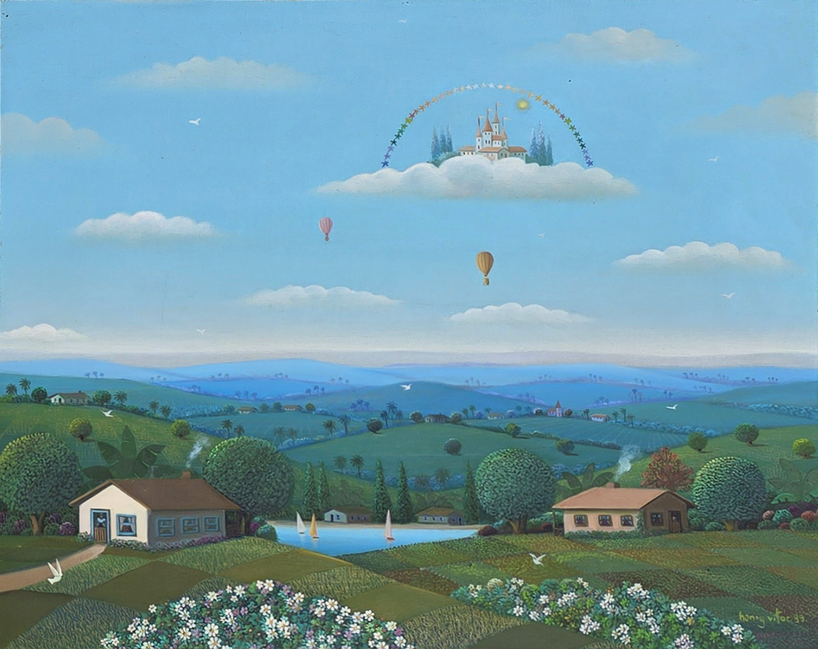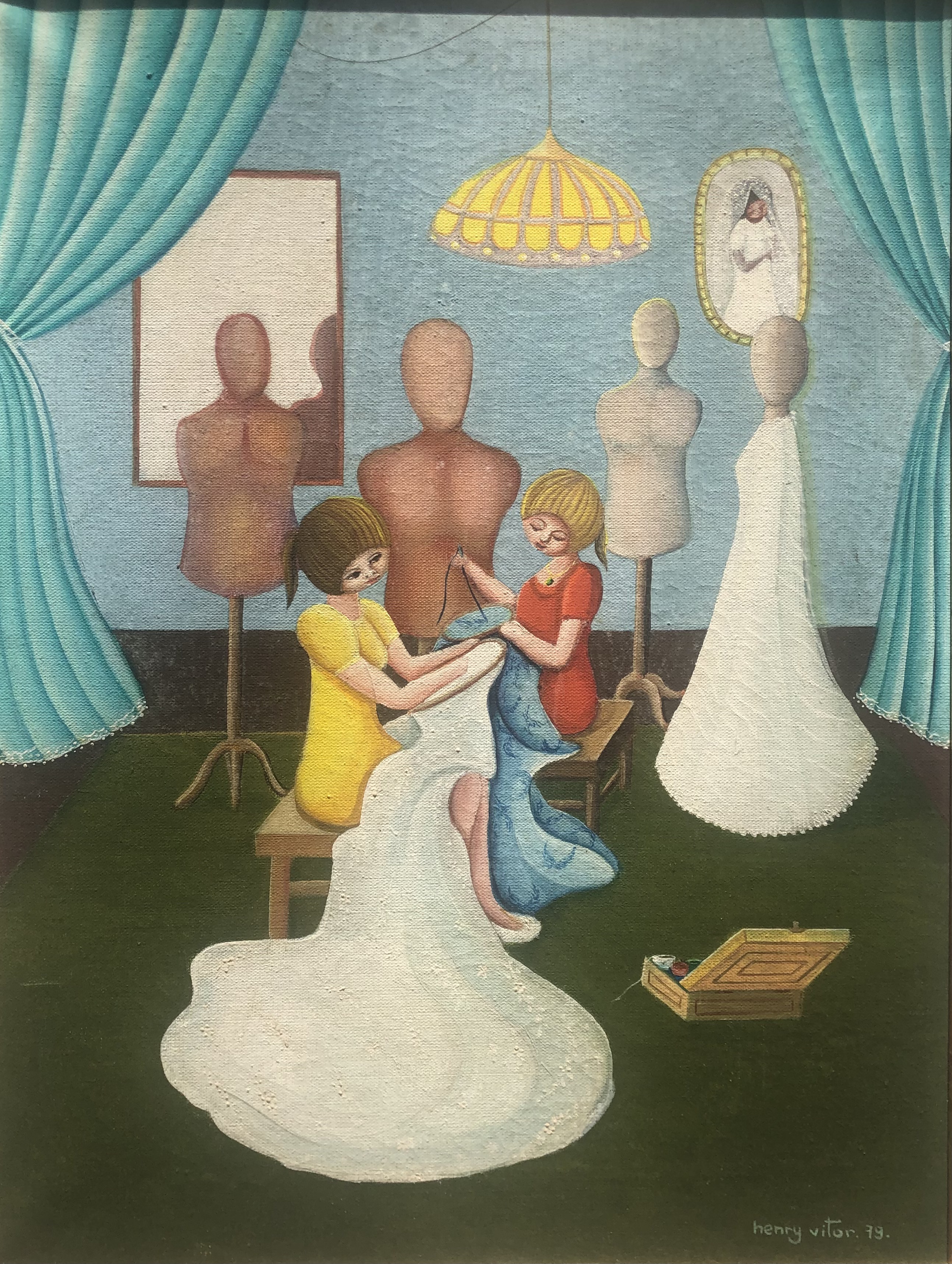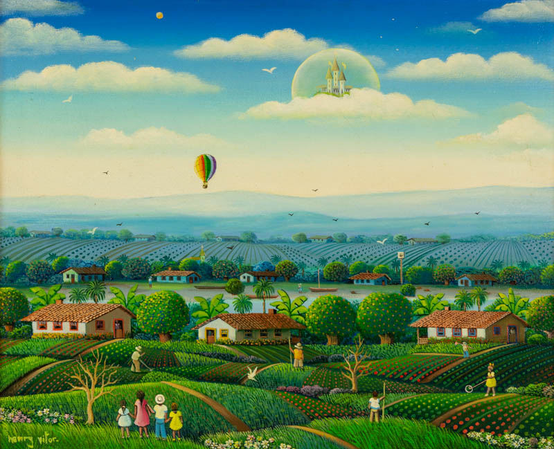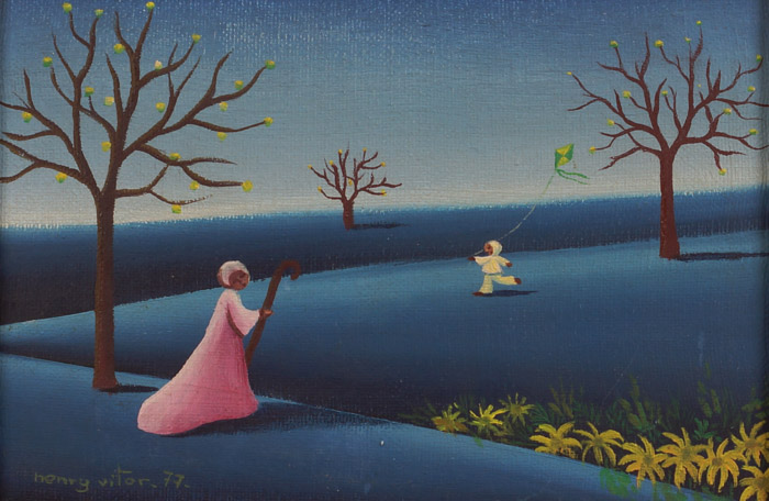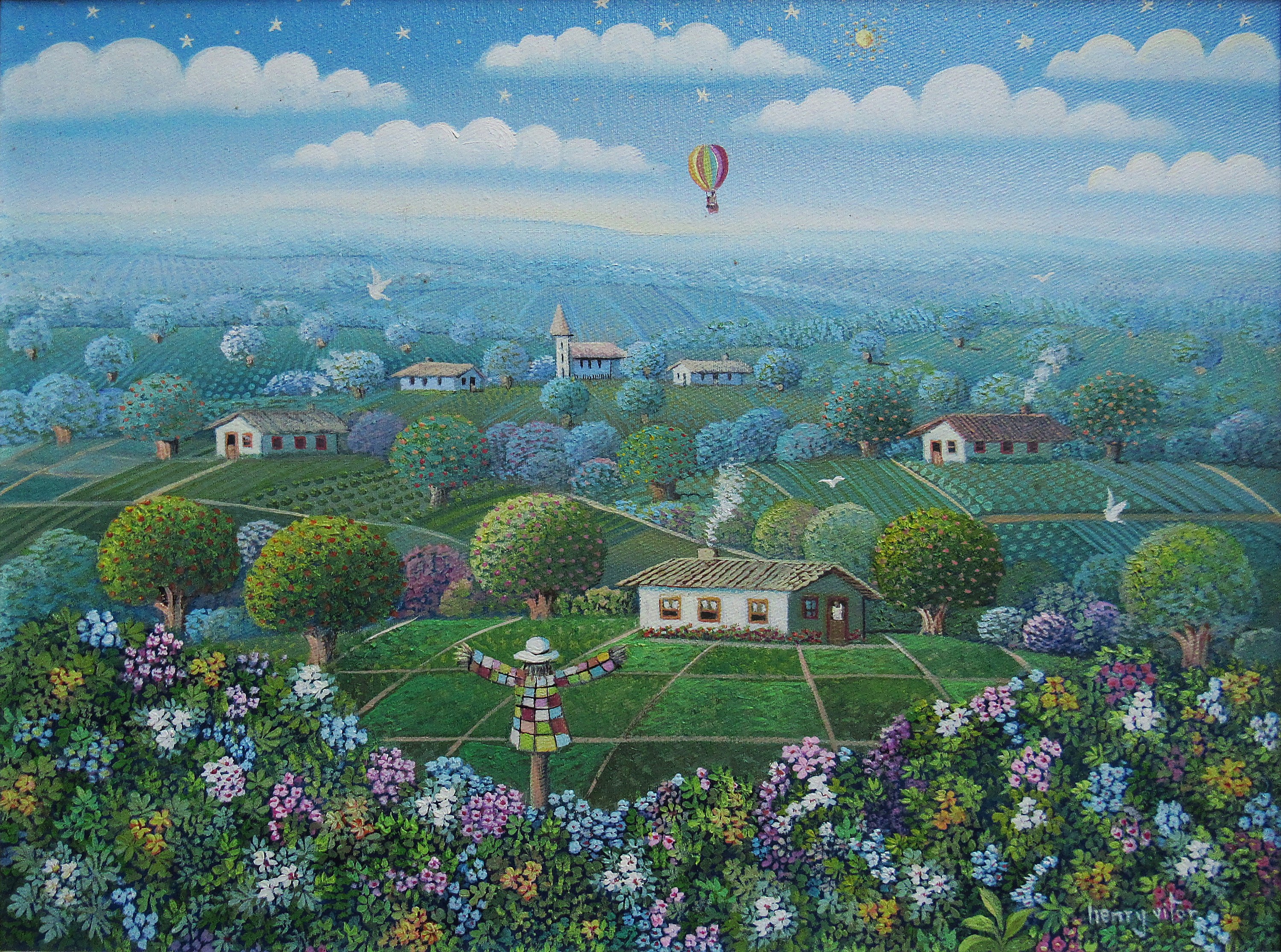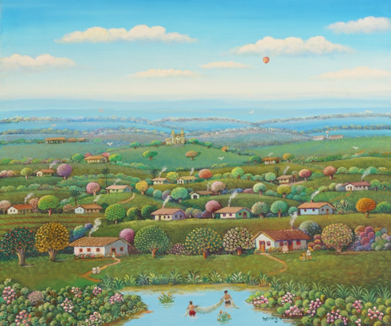 Henry Vitor Santos (Guaxupé MG 1939). Pintor, gravador, jornalista. Autodidata, começa a pintar em 1967, começa a expor no início dos 1970, em São Paulo. Cria e executa painéis para as agências Voluntários da Pátria e Pamplona do Banespa, em 1985 e 1986. Em 1994, cria e executa painel para o hall de entrada da empresa Haarmann & Reimer. Participa do projeto do filme Arte Naif no Brasil, de Cristina Corbett, produção de Júlio Xavier, em 1995. No mesmo ano, cria a capa do CD do Duofel, e, em 1998, cria a capa do CD Paulinho Pedra Azul - Instrumental encantado. Participa do 5º Jovem Arte Contemporânea, no MAC/USP, em 1971, da 20ª Exposição de Arte Contemporânea, na Chapel Art Show em 1987, e da Bienal Brasileira de Arte Naif, no Sesc Piracicaba, em 1994, onde obtém Menção Honrosa.