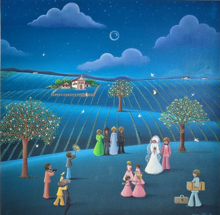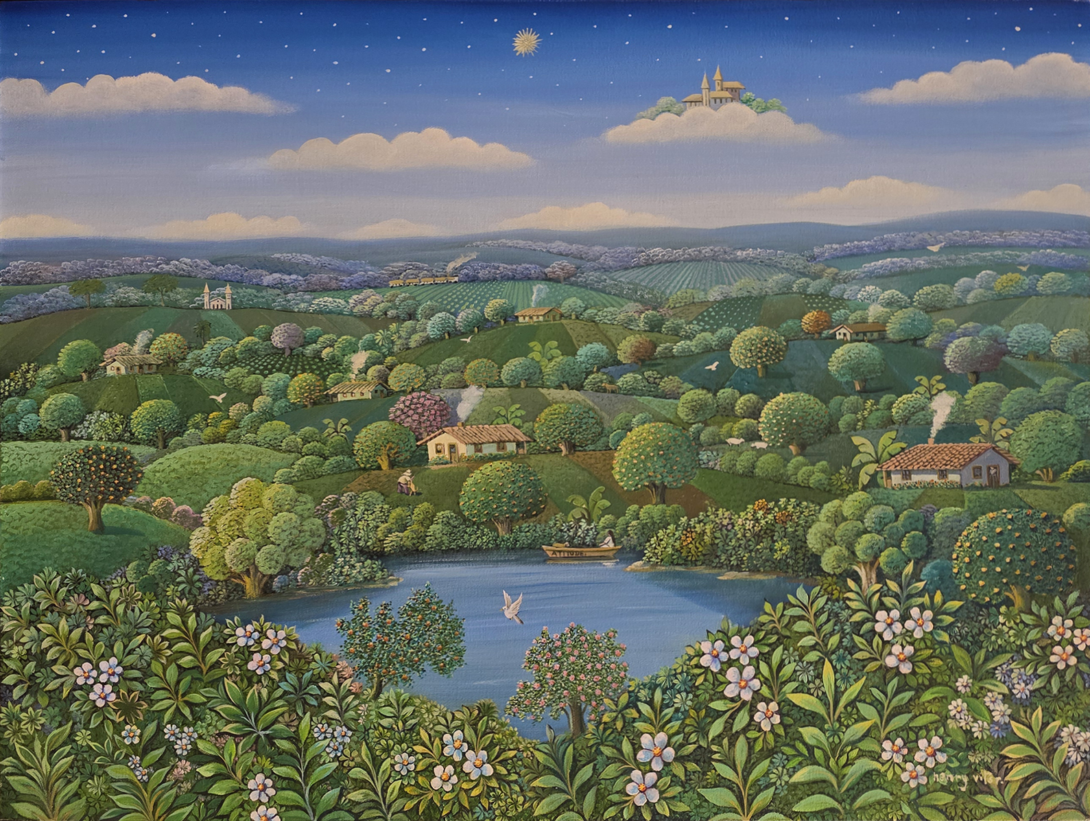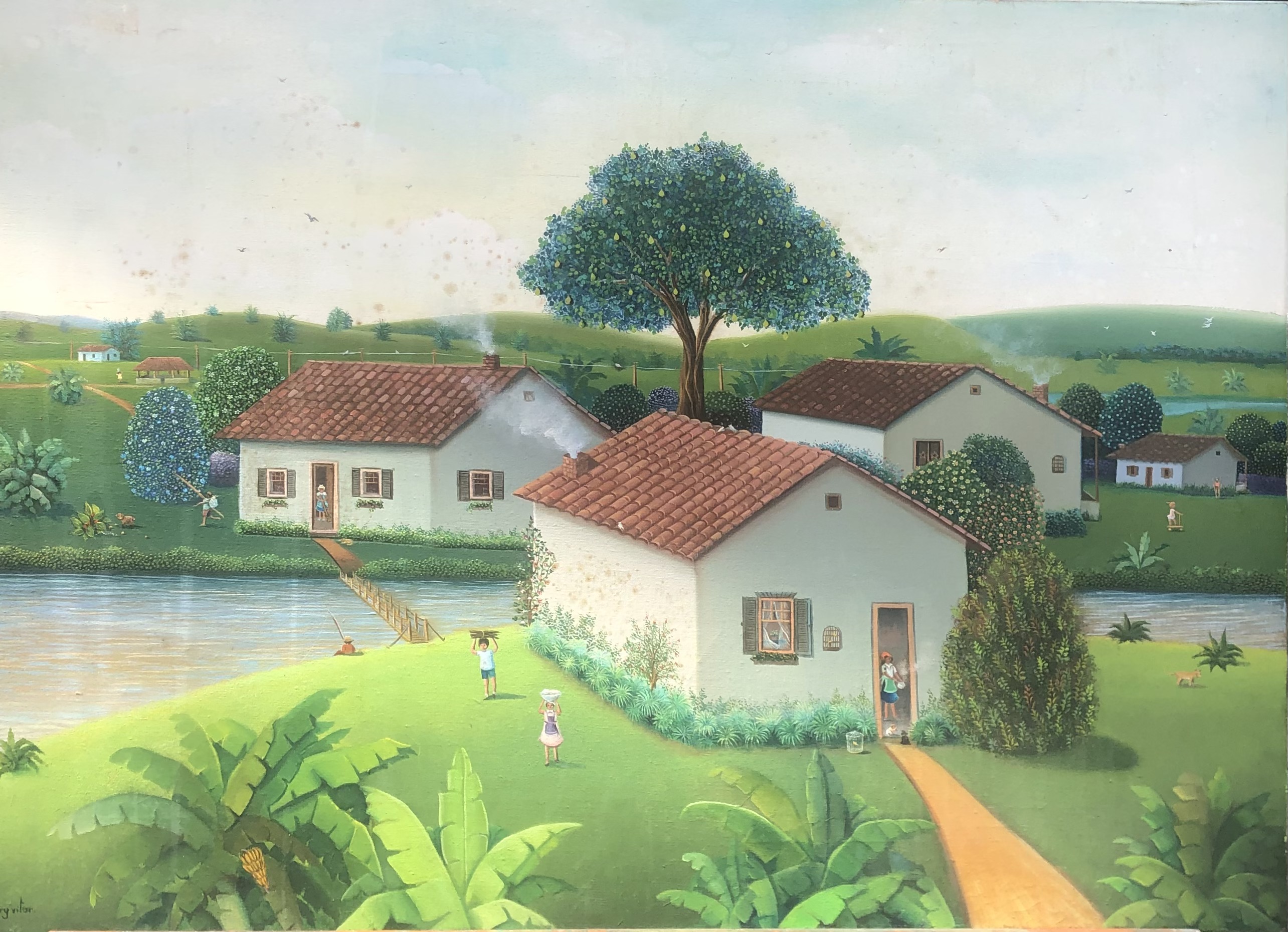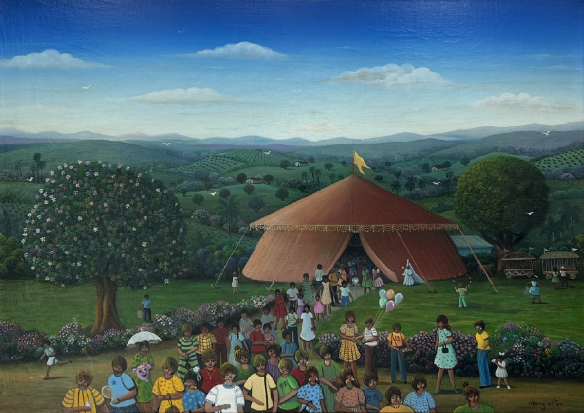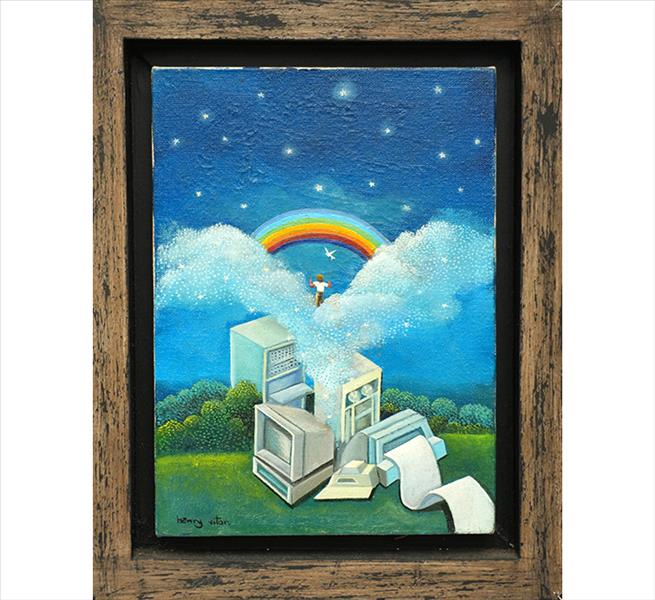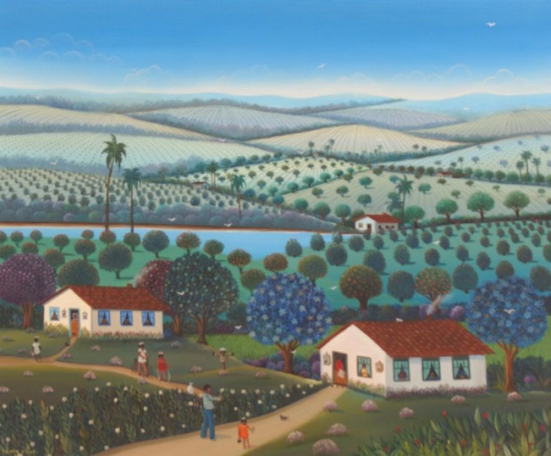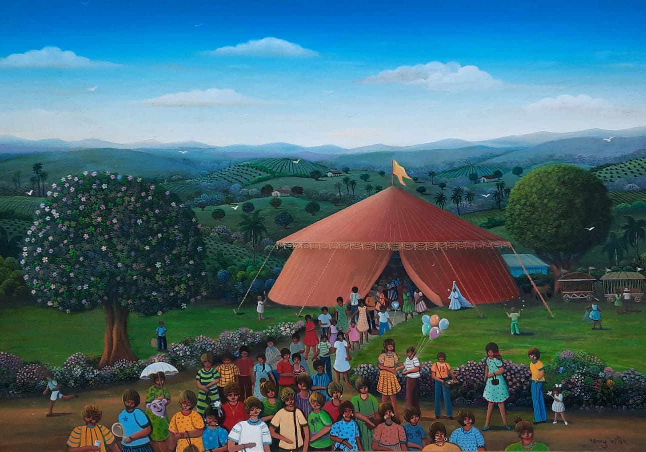 Henry Vitor Santos (Guaxupé MG 1939). Pintor, gravador, jornalista. Autodidata, começa a pintar em 1967, começa a expor no início dos 1970, em São Paulo. Cria e executa painéis para as agências Voluntários da Pátria e Pamplona do Banespa, em 1985 e 1986. Em 1994, cria e executa painel para o hall de entrada da empresa Haarmann & Reimer. Participa do projeto do filme Arte Naif no Brasil, de Cristina Corbett, produção de Júlio Xavier, em 1995. No mesmo ano, cria a capa do CD do Duofel, e, em 1998, cria a capa do CD Paulinho Pedra Azul - Instrumental encantado. Participa do 5º Jovem Arte Contemporânea, no MAC/USP, em 1971, da 20ª Exposição de Arte Contemporânea, na Chapel Art Show em 1987, e da Bienal Brasileira de Arte Naif, no Sesc Piracicaba, em 1994, onde obtém Menção Honrosa.