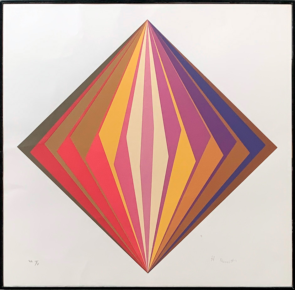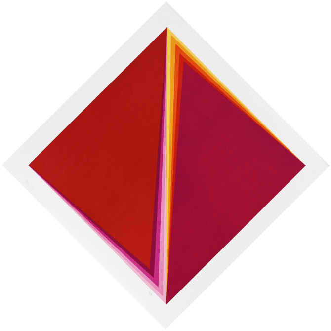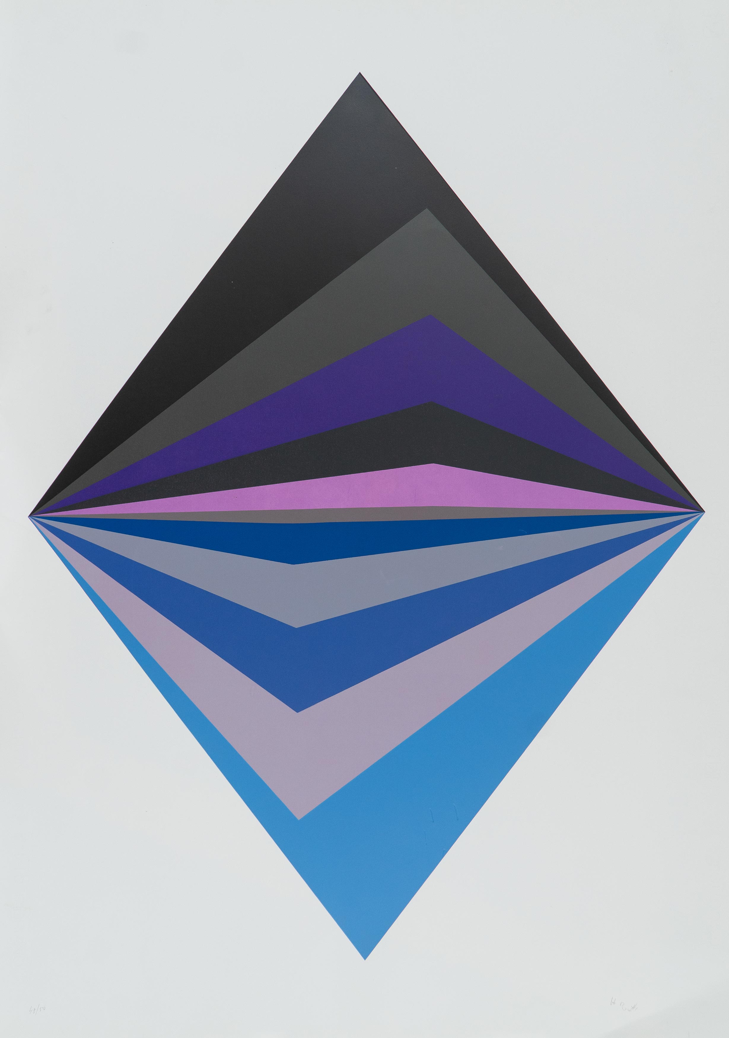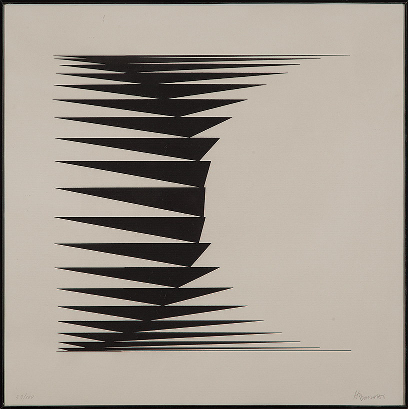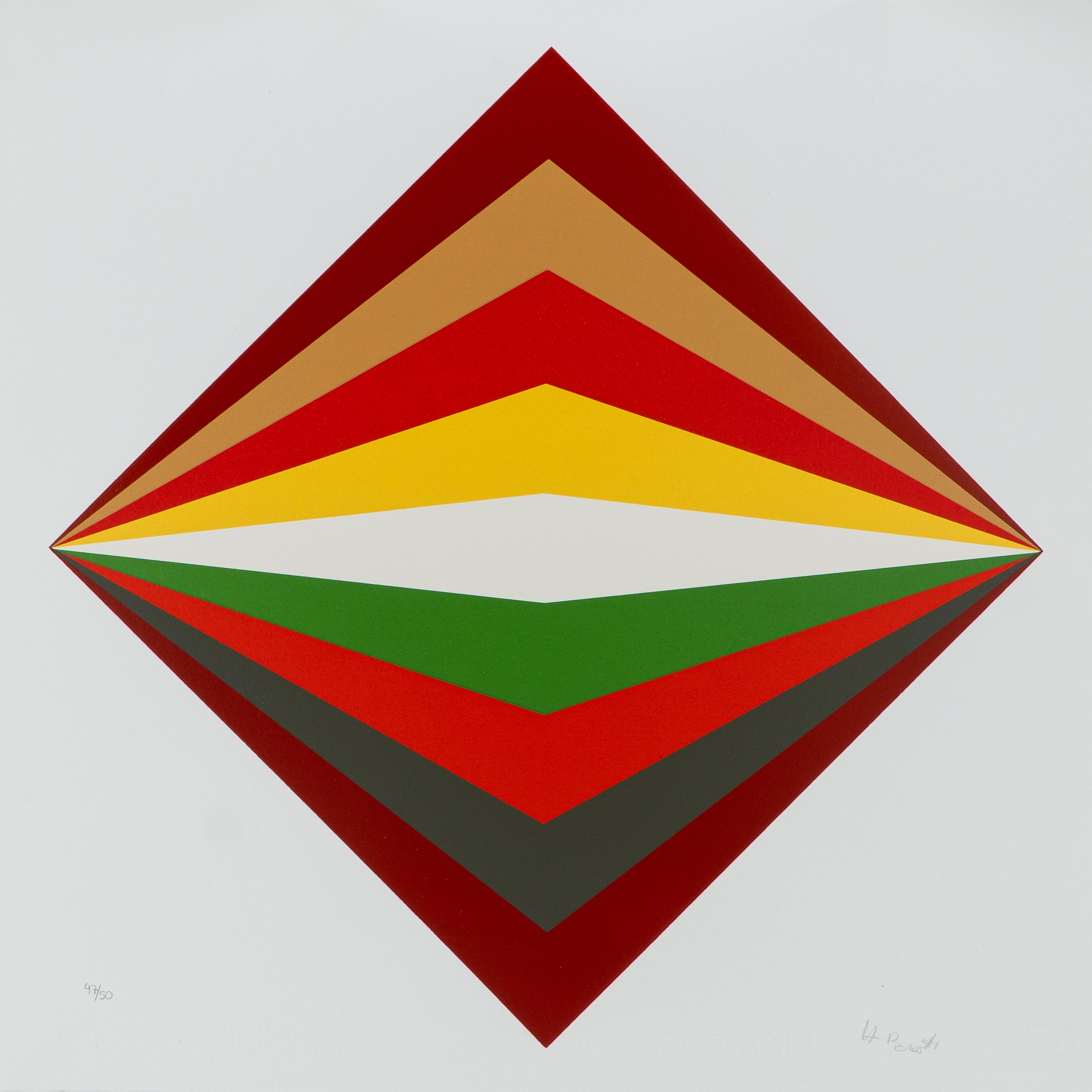 Hércules Rubens Barsotti (São Paulo SP 1914 - idem 2010). Pintor, desenhista, programador visual, gravador. Inicia formação artística em 1926, sob orientação do pintor Enrico Vio (1874-1960), com quem estuda desenho e composição. Em 1937, forma-se em química industrial pelo Instituto Mackenzie. Começa a pintar em 1940 e, na década seguinte, realiza as primeiras pinturas concretas, além de trabalhar como desenhista têxtil e projetar figurino para o teatro. Em 1954, com Willys de Castro (1926-1988), funda o Estúdio de Projetos Gráficos, elabora ilustrações para várias revistas e desenvolve estampas de tecidos produzidos em sua tecelagem. Viaja a estudo para a Europa em 1958, onde conhece Max Bill (1908-1994), então um dos principais teóricos da arte concreta. Na década de 1960, convidado por Ferreira Gullar (1930), integra-se ao Grupo Neoconcreto do Rio de Janeiro e participa das exposições de arte do grupo realizadas no Ministério da Educação e Cultura (MEC), no Rio de Janeiro, e no Museu de Arte Moderna de São Paulo (MAM/SP). Em 1960, expõe na mostra Konkrete Kunst [Arte Concreta], organizada por Max Bill, em Zurique. Hercules Barsotti explora a cor, as possibilidades dinâmicas da forma e utiliza formatos de quadros pouco usuais, como losangos, hexágonos, pentágonos e circunferências. Em sua obra a disposição dos campos de cor cria a ilusão de tridimensionalidade. Entre 1963 e 1965, colabora na fundação e participa do Grupo Novas Tendências, em São Paulo. Em 2004, o MAM/SP organiza uma retrospectiva do artista.