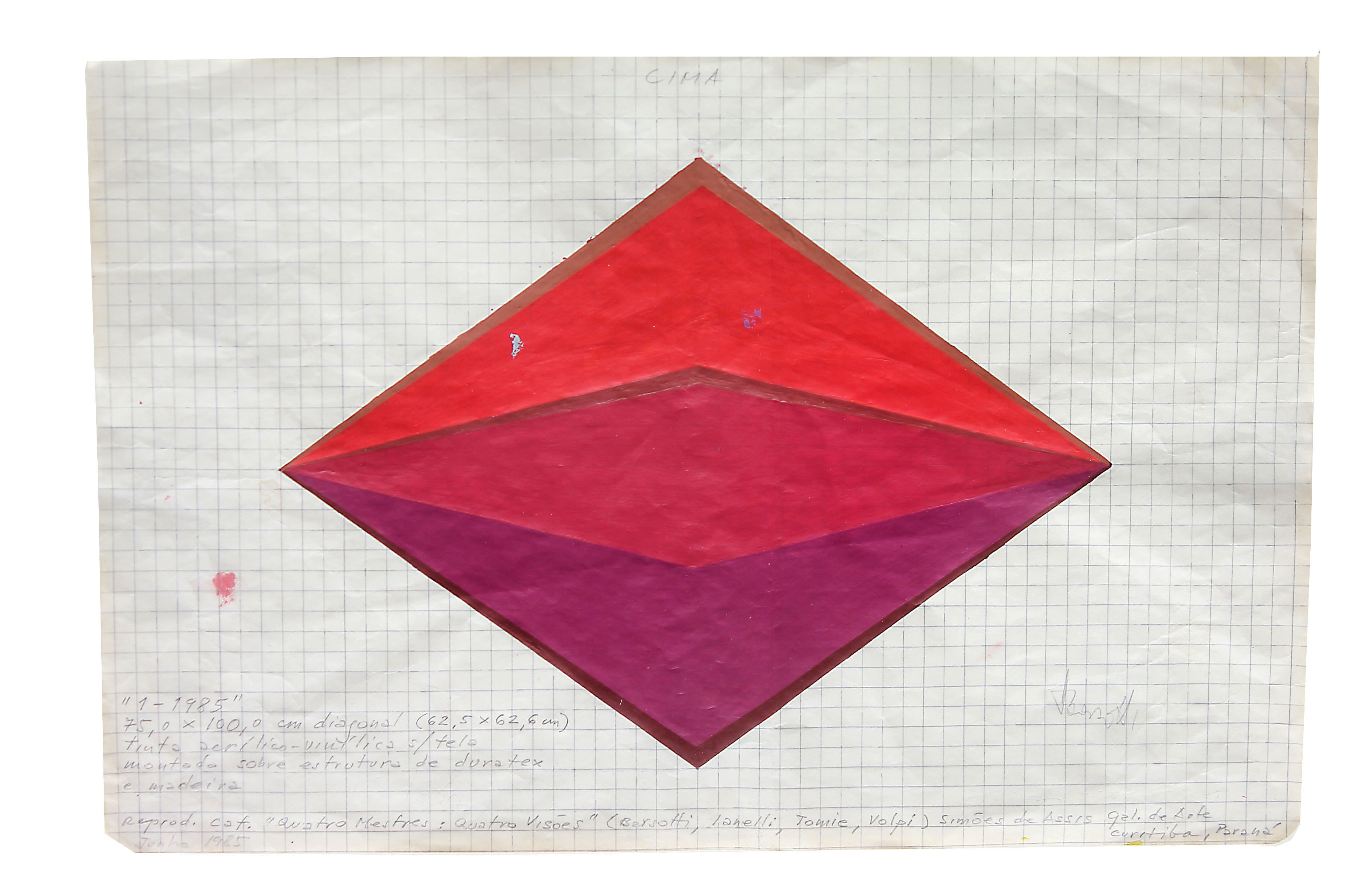 Hércules Rubens Barsotti (São Paulo SP 1914 - idem 2010). Pintor, desenhista, programador visual, gravador. Inicia formação artística em 1926, sob orientação do pintor Enrico Vio (1874-1960), com quem estuda desenho e composição. Em 1937, forma-se em química industrial pelo Instituto Mackenzie. Começa a pintar em 1940 e, na década seguinte, realiza as primeiras pinturas concretas, além de trabalhar como desenhista têxtil e projetar figurino para o teatro. Em 1954, com Willys de Castro (1926-1988), funda o Estúdio de Projetos Gráficos, elabora ilustrações para várias revistas e desenvolve estampas de tecidos produzidos em sua tecelagem. Viaja a estudo para a Europa em 1958, onde conhece Max Bill (1908-1994), então um dos principais teóricos da arte concreta. Na década de 1960, convidado por Ferreira Gullar (1930), integra-se ao Grupo Neoconcreto do Rio de Janeiro e participa das exposições de arte do grupo realizadas no Ministério da Educação e Cultura (MEC), no Rio de Janeiro, e no Museu de Arte Moderna de São Paulo (MAM/SP). Em 1960, expõe na mostra Konkrete Kunst [Arte Concreta], organizada por Max Bill, em Zurique. Hercules Barsotti explora a cor, as possibilidades dinâmicas da forma e utiliza formatos de quadros pouco usuais, como losangos, hexágonos, pentágonos e circunferências. Em sua obra a disposição dos campos de cor cria a ilusão de tridimensionalidade. Entre 1963 e 1965, colabora na fundação e participa do Grupo Novas Tendências, em São Paulo. Em 2004, o MAM/SP organiza uma retrospectiva do artista.