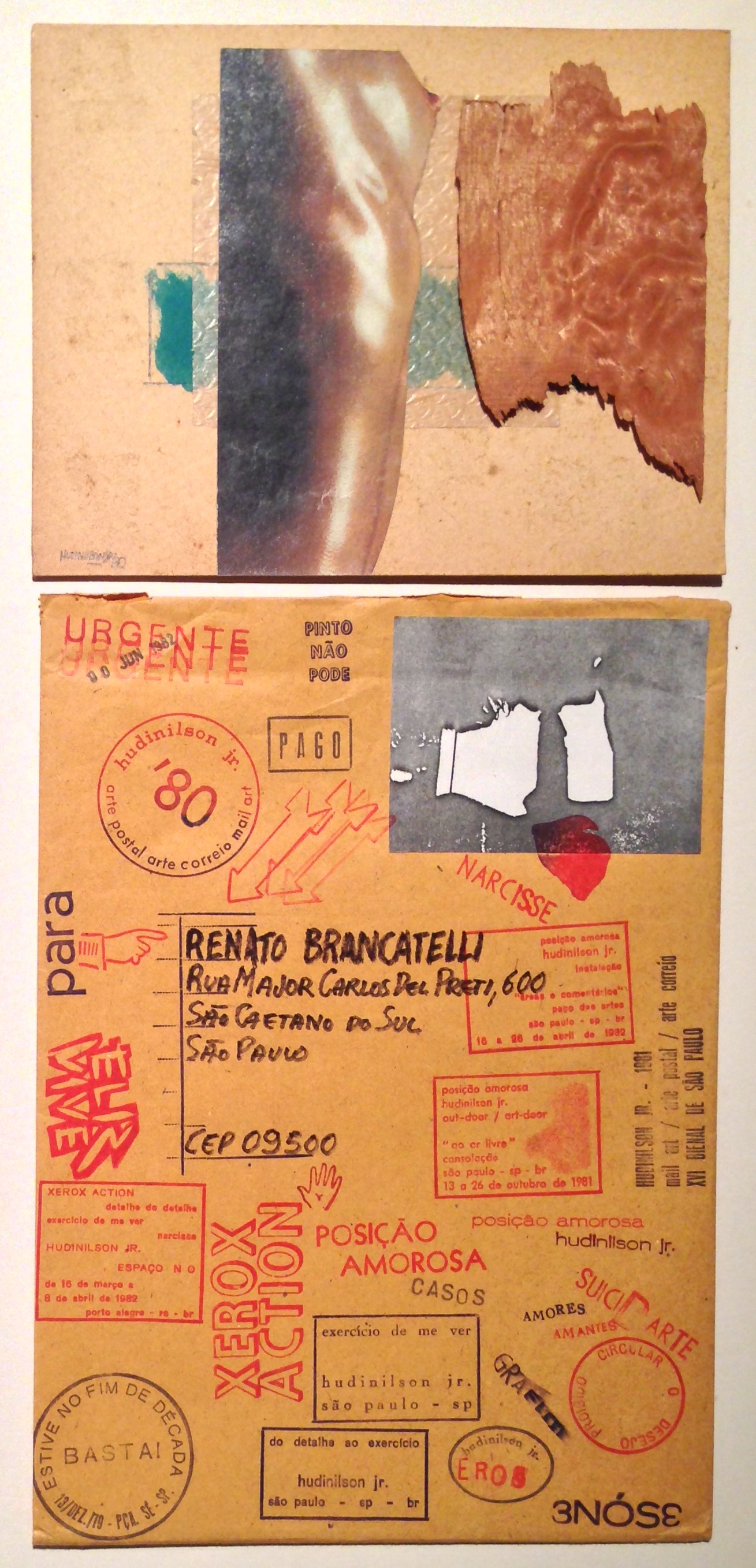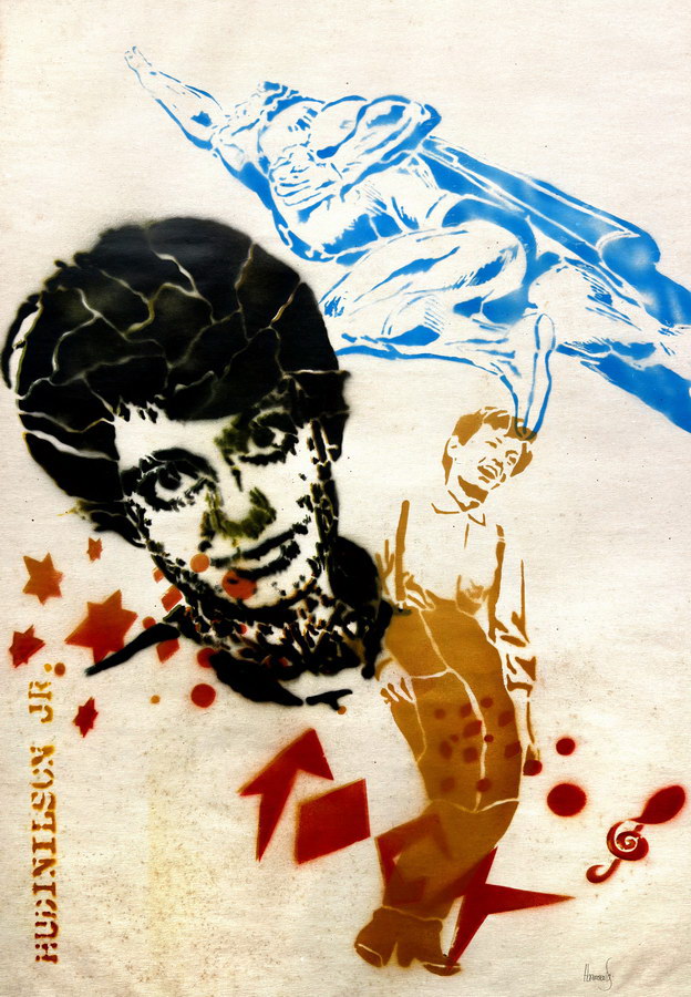 Hudinilson Urbano Júnior  (São Paulo, São Paulo, 1957 - Idem, 2013). Artista multimídia. Inicia seu aprendizado artístico nas sessões de filmes sobre arte exibidos no Museu Lasar Segall no início dos anos 1970. Realiza experiências com xilogravura durante o período colegial e produz fotografias no laboratório do Museu Lasar Segall. Ingressa no colégio técnico do Instituto de Arte e Decoração (Iadê) de São Paulo. Entre 1975 e 1977 cursa artes plásticas na Fundação Armando Álvares Penteado (Faap). Trabalha como auxiliar de design gráfico na TV Cultura. Produz arte postal, grafite, e integra com Alex Vallauri (1949-1987) um grupo de grafiteiros. De 1979 a 1982 compõe o grupo 3Nós3, com os artistas Mário Ramiro (1957) e Rafael França (1957-1991), que realiza intervenções na cidade de São Paulo. No mesmo período, faz experiências em xerografia. Ao ser convidado pela Pinacoteca do Estado de São Paulo (Pesp) a ministrar oficinas de xerografia, participa de cursos técnicos na fabricante de fotocopiadoras, a Xerox do Brasil. Executa a performance Exercício de me ver II (1982), com a máquina xerográfica no Museu de Arte Moderna (MAM/RJ). Realiza as exposições individuais Do Detalhe ao Exercício (1981), na Pesp, e Xerox Action (1983) no Museu de Arte Contemporânea (MAC/USP). Atua como curador de exposições de xerografia na Pesp entre 1982 e 1984. Trabalha como designer gráfico na escola de fotografia Zoom School, do fotógrafo Afonso Roperto (1976-2008). Uma grande mostra de seus trabalhos ocorre na Glasgow International Festival of Contemporary Visual Art, na Escócia, 2014.