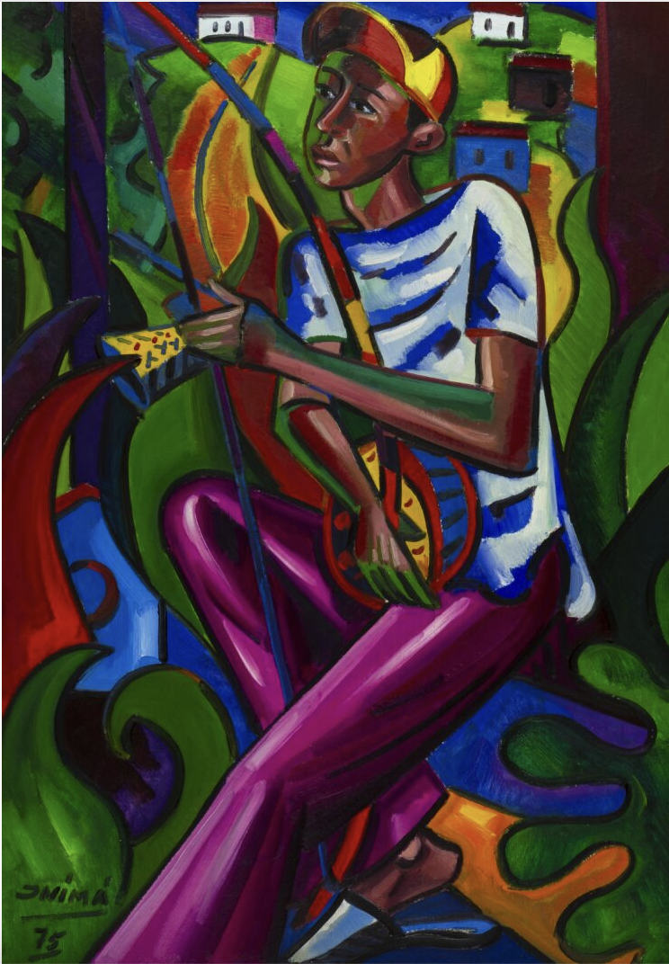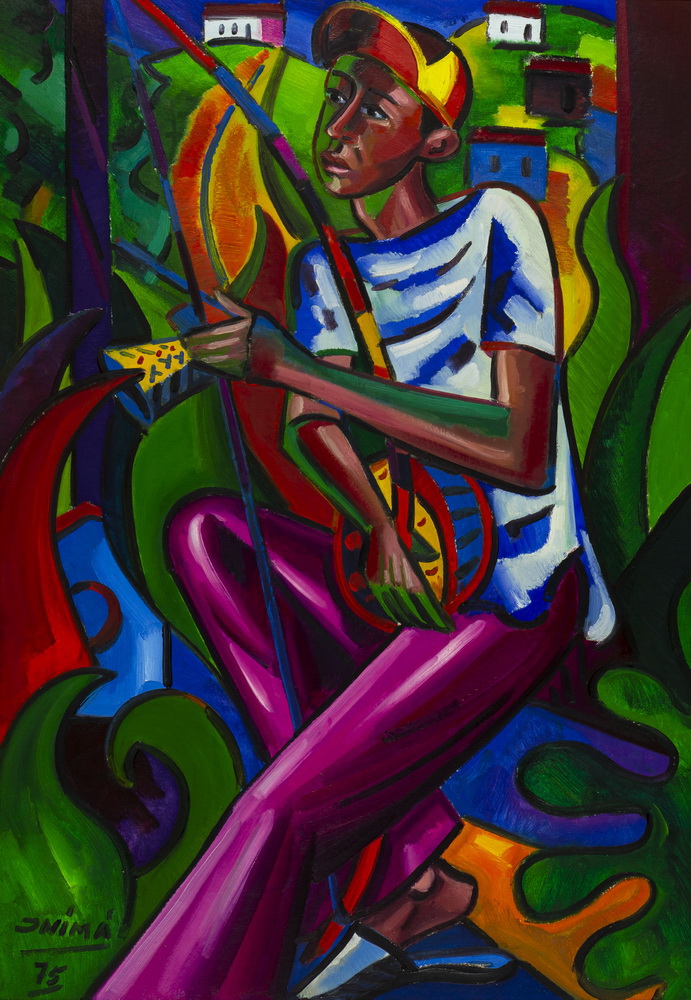 Inimá de Paula - Menino com Berimbau – 95 x 65,5 cm – Óleo sobre Eucatex – Ass. Canto Inferior Esquerdo e Dat. 1975
