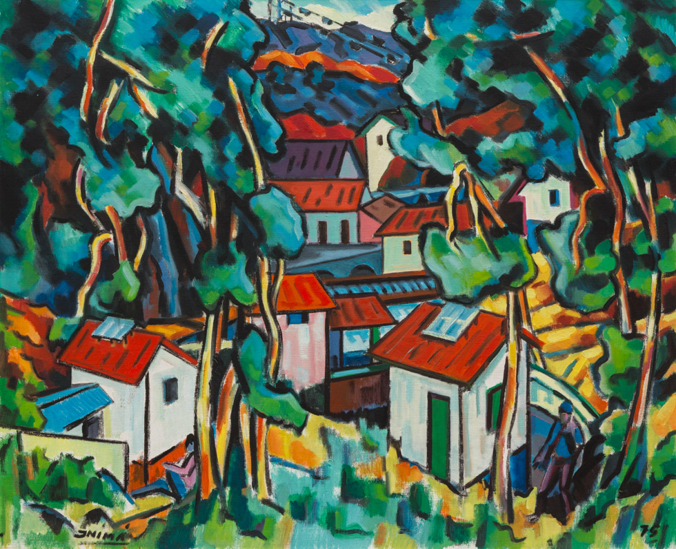 Inimá de Paula - Casario e Paisagem - Óleo sobre tela - 80 alt x 100 larg - acie - 1991