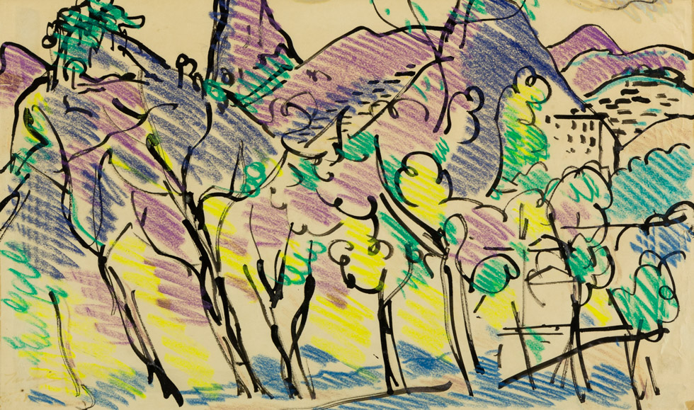 Inimá de Paula - Paisagem de Santa Tereza/RJ – 28 x 46,5 cm – Técnica Mista sobre Papel - Ass. Canto Inferior Esquerdo e Dat. 1968