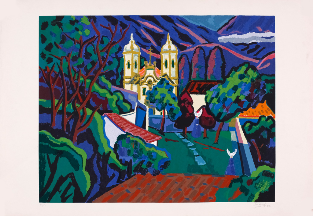 Casarão Vermelho - 72 x 100 cm - Gravura sem Moldura - Ass. Com Cachet - Exemplar P.A - Bom estado - Tiragem póstuma realizada em 2015 - Assinada pela Fundação Inimá de Paula - Bom estado