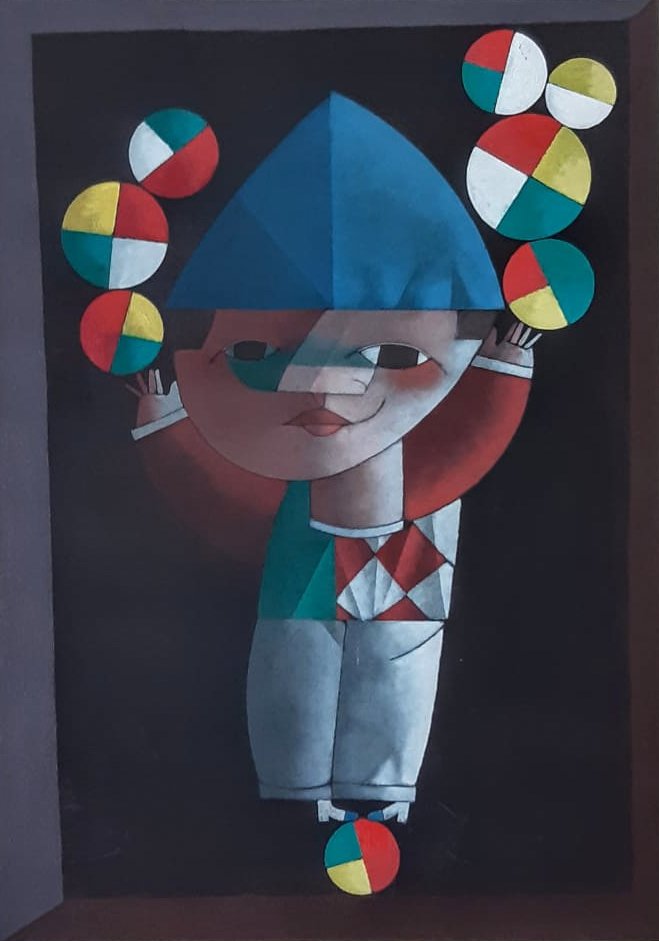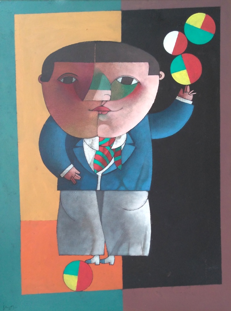 Inos Corradin - Equilibrista com fundo amarelo - Óleo sobre tela - 70 alt x 50 larg - acid e verso