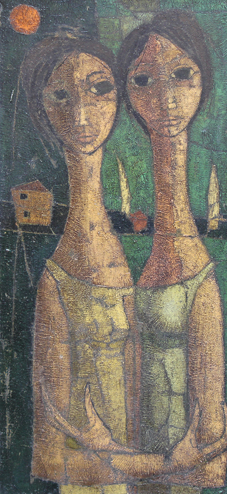 Inos Corradin - Duas Figuras - Óleo sobre tela - 100 alt x 40 larg - acie - Obra acompanha certificado emitido pelo artista.