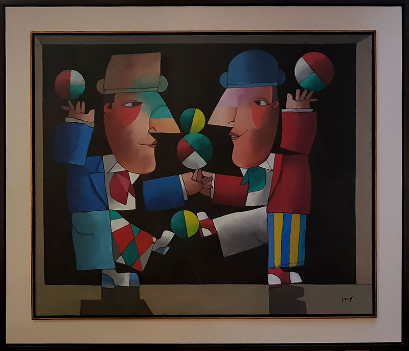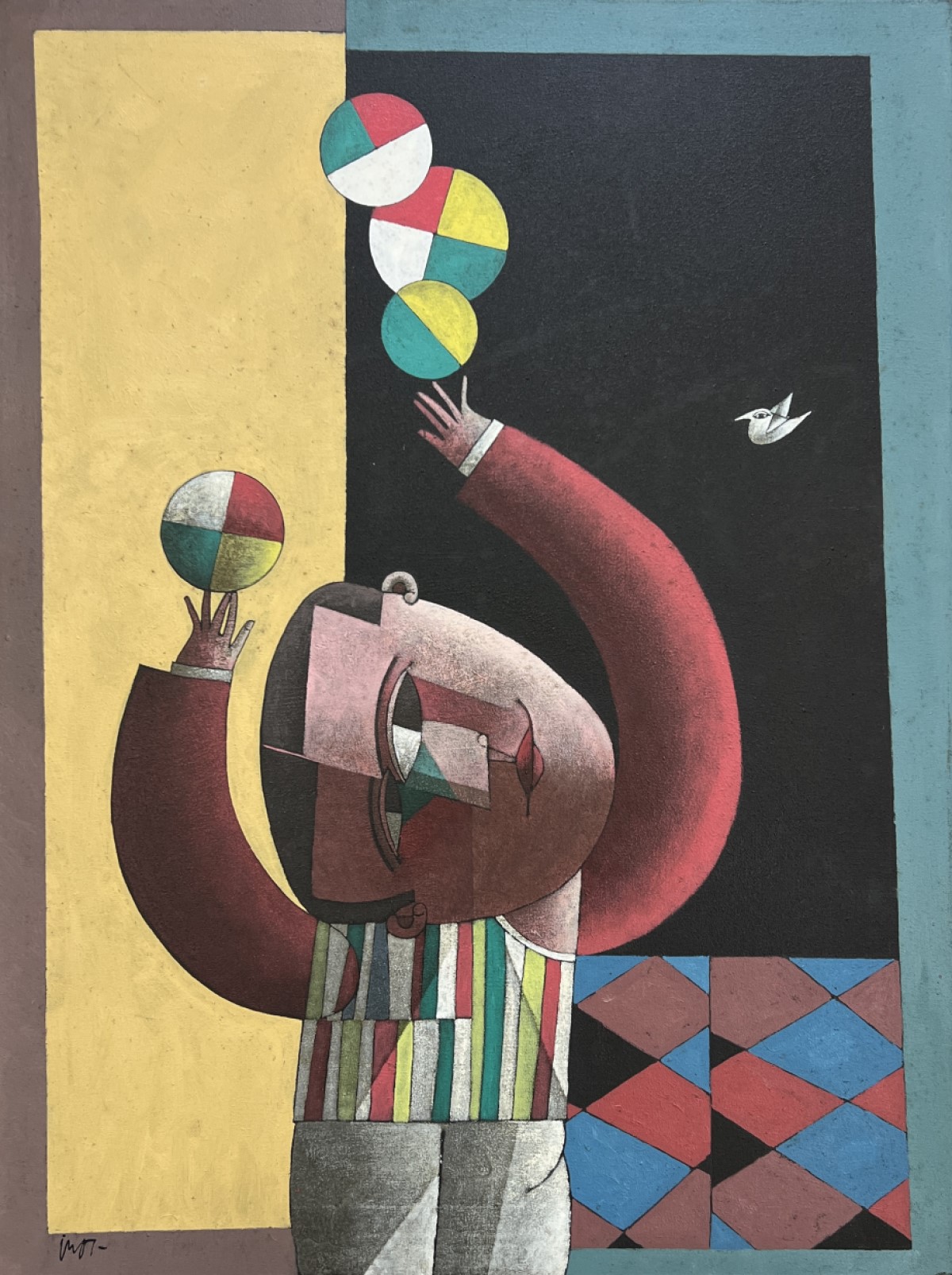 Inos Corradin - Equilibrista com fundo amarelo - Óleo sobre tela - 70 alt x 50 larg - acid e verso