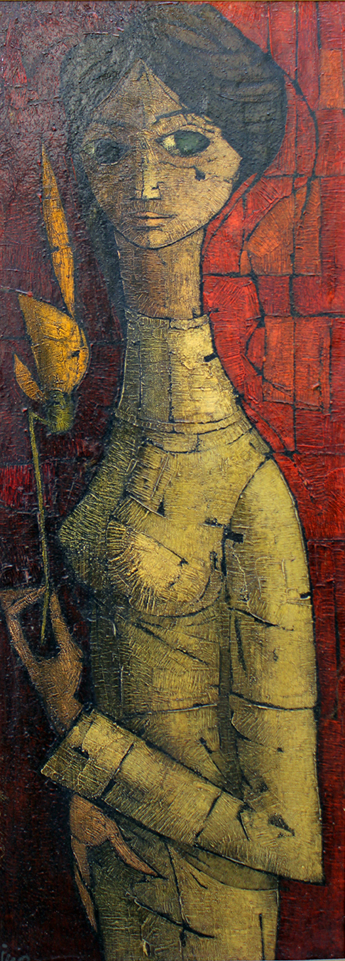 Inos Corradin - Figura feminina - Óleo sobre tela - 115 alt x 43 larg - acid - Obra acompanha certificado emitido pelo artista.