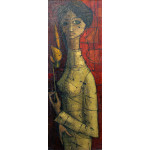 Inos Corradin acrilico sobre tela 70 x 50cm intitulada "A Moça Tímida" ass. CIE e verso.