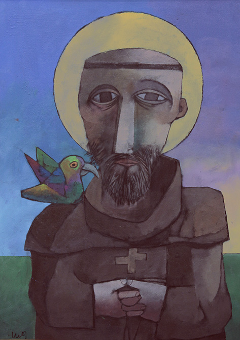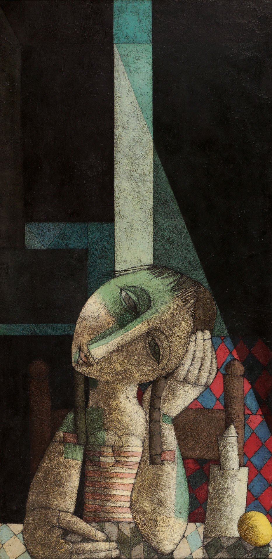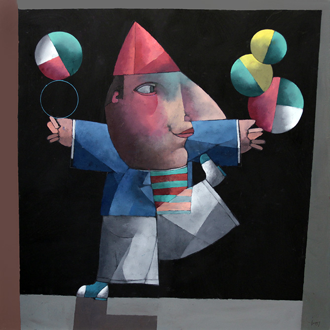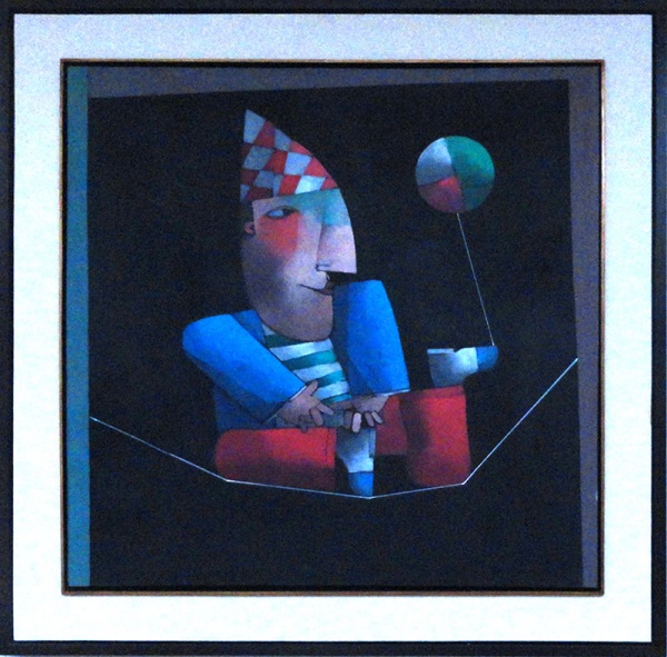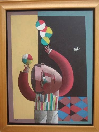 Inos Corradin - Equilibrista com fundo amarelo - Óleo sobre tela - 70 alt x 50 larg - acid e verso