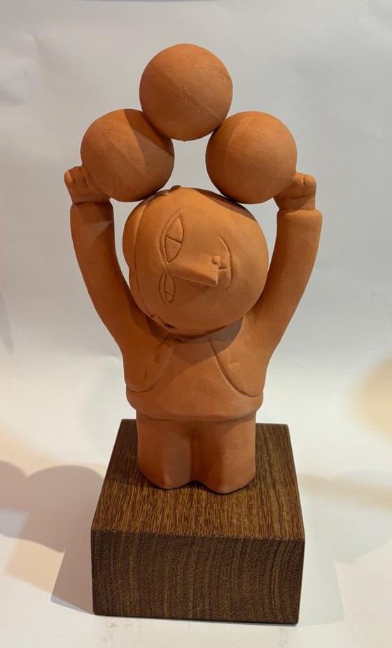 Inos Corradin - Equilibrista - Escultura em Terracota - 28cm Alt - Base em Madeira