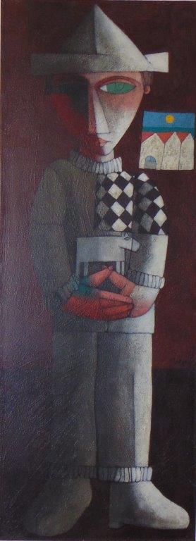 Inos Corradin - Menino e pomba - Óleo sobre tela - Assinado canto inferior direito - 70 x 50 cm.