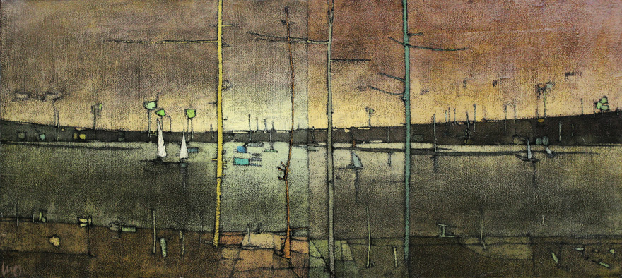 Inos Corradin - Por do Sol no Mediterrâneo - Óleo sobre tela - 80 alt x 60 larg - acie e verso