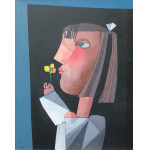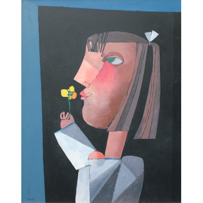 Inos Corradin acrilico sobre tela 70 x 50cm intitulada "A Moça Tímida" ass. CIE e verso.