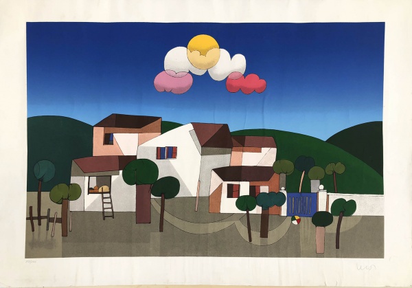 Inos Corradin - Casario - Óleo sobre tela - 74 alt x 50 larg - acie - Obra acompanha certificado emitido pelo artista.