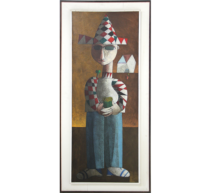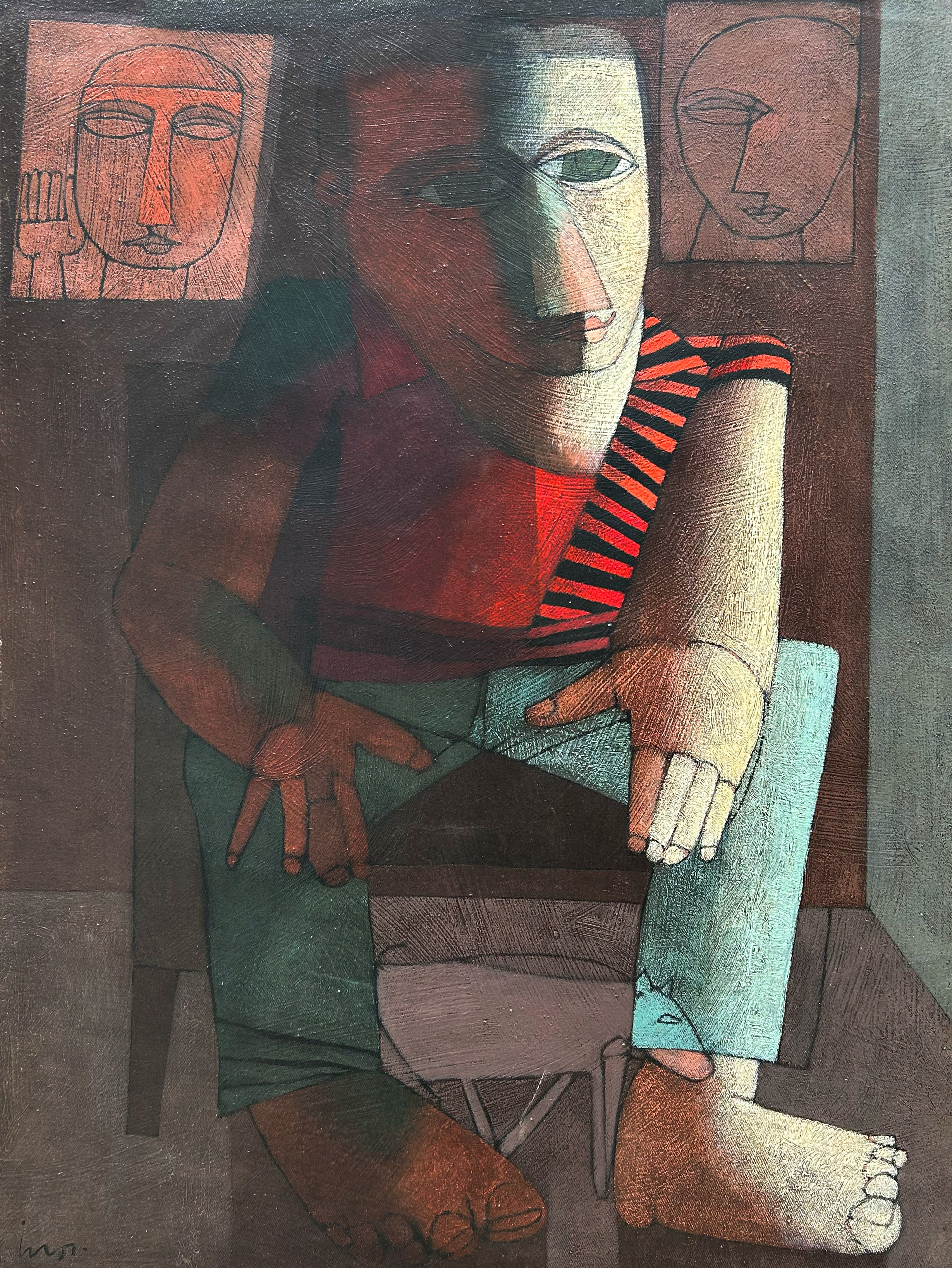 Inos Corradin - Menino e pomba - Óleo sobre tela - Assinado canto inferior direito - 70 x 50 cm.