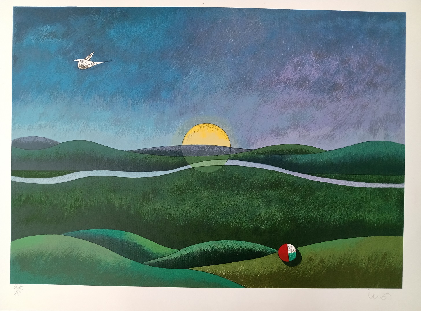Inos Corradin - Por do Sol no Mediterrâneo - Óleo sobre tela - 80 alt x 60 larg - acie e verso