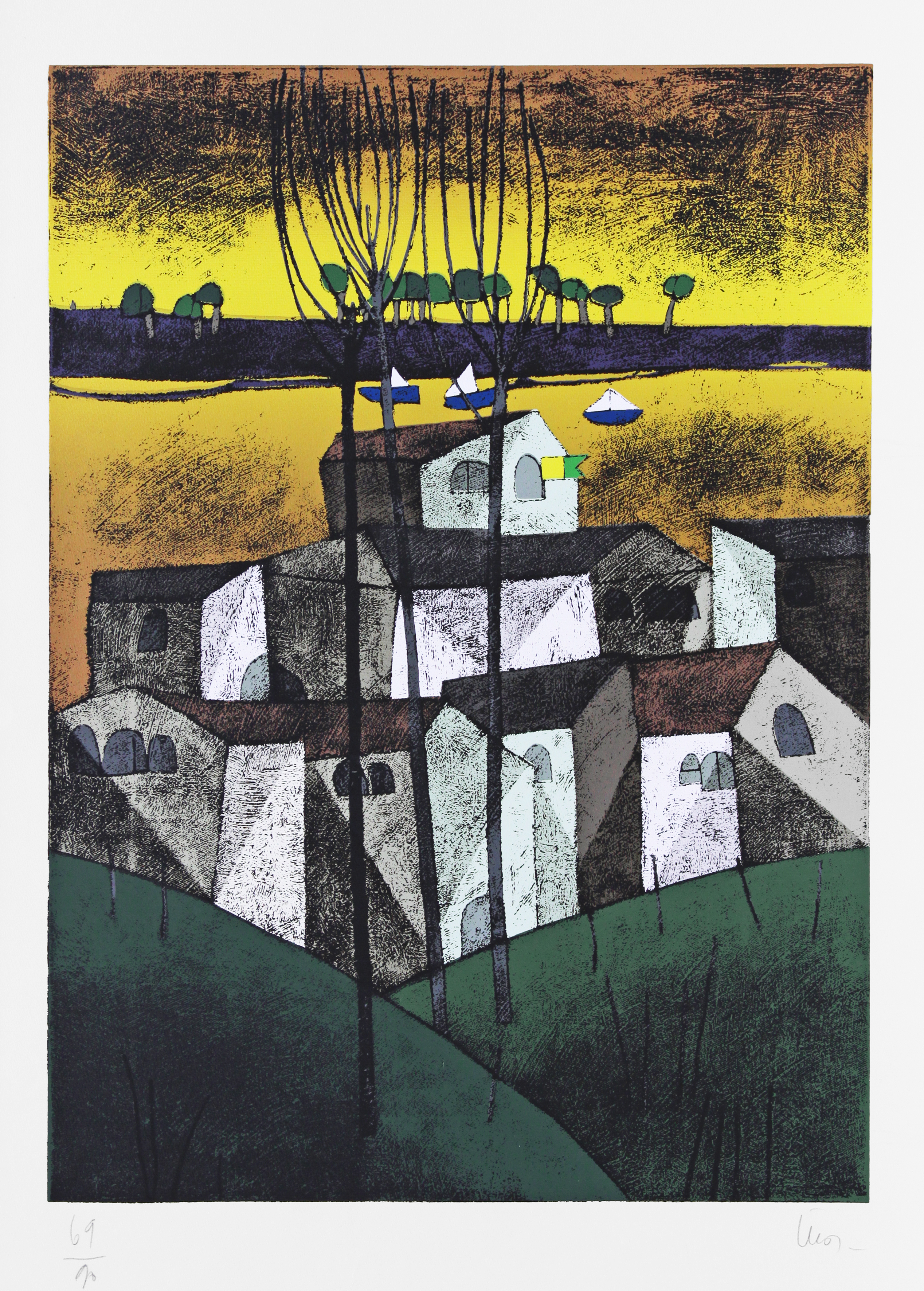 Inos Corradin - Casario - Óleo sobre tela - 74 alt x 50 larg - acie - Obra acompanha certificado emitido pelo artista.