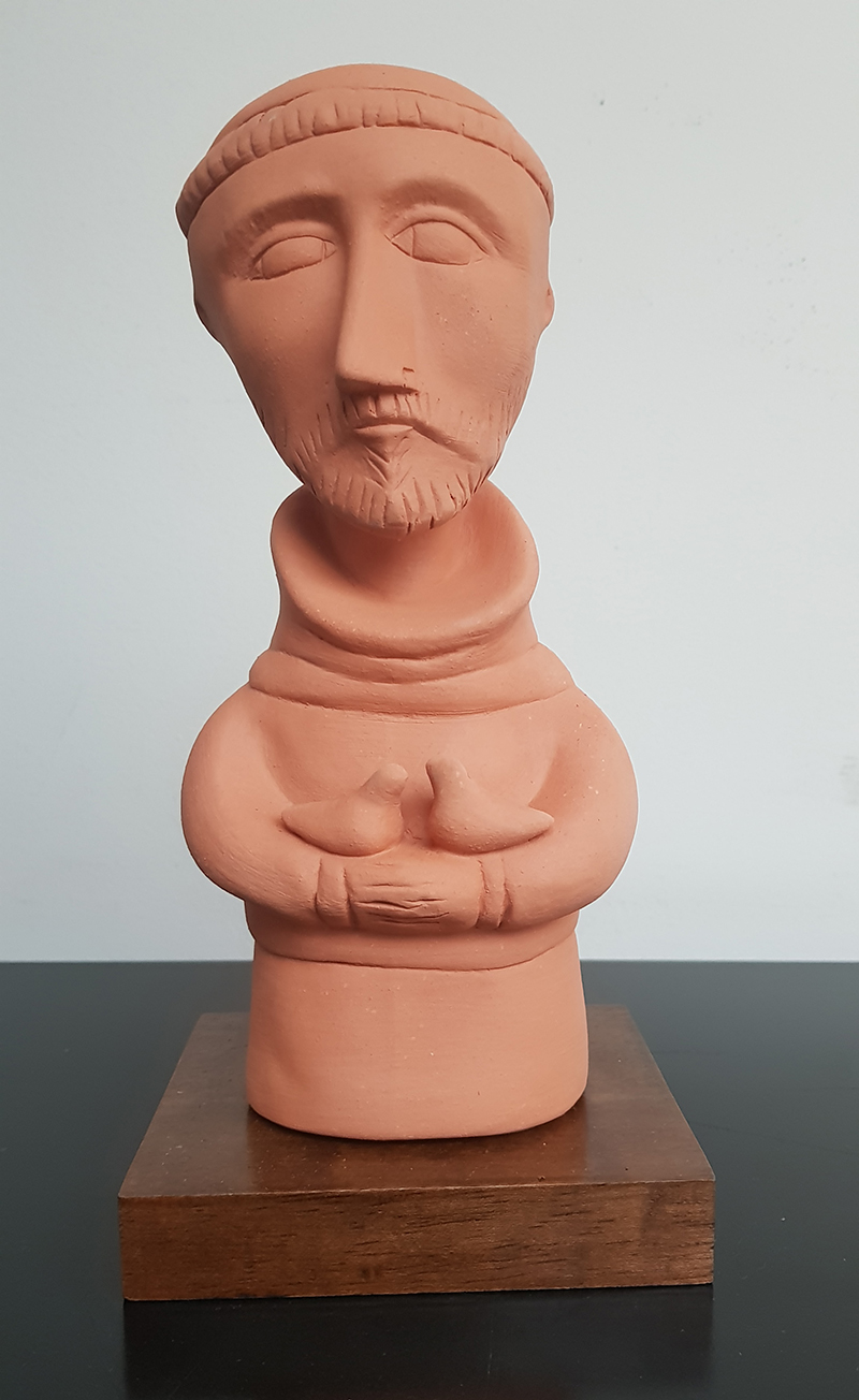 Inos Corradin - São Francisco - Escultura em Terracota - 25cm Alt - Base em Madeira