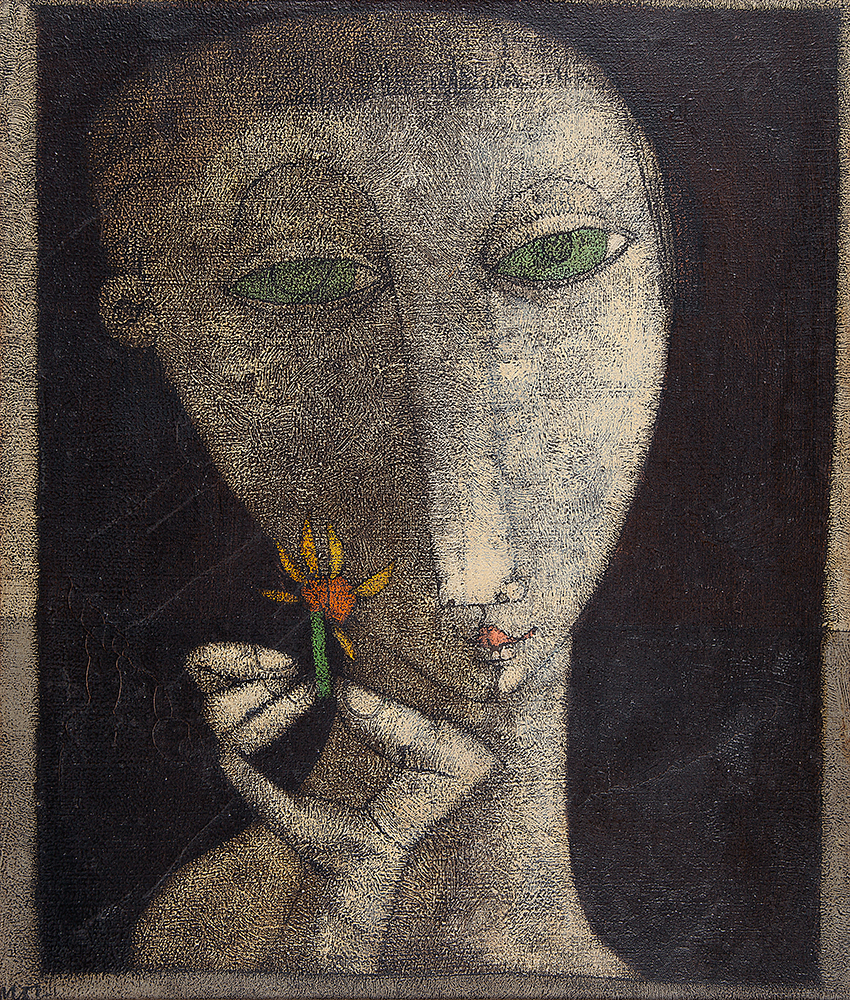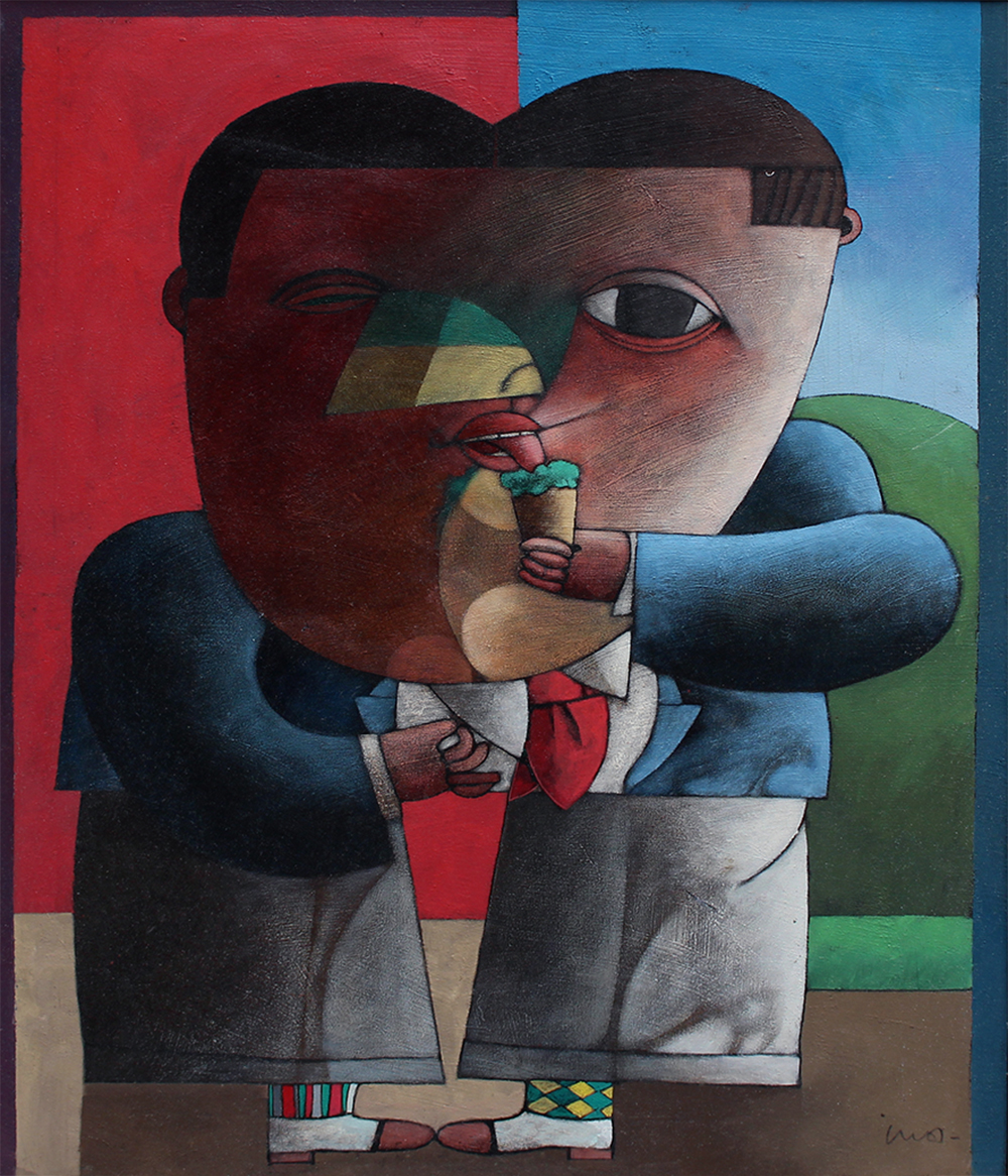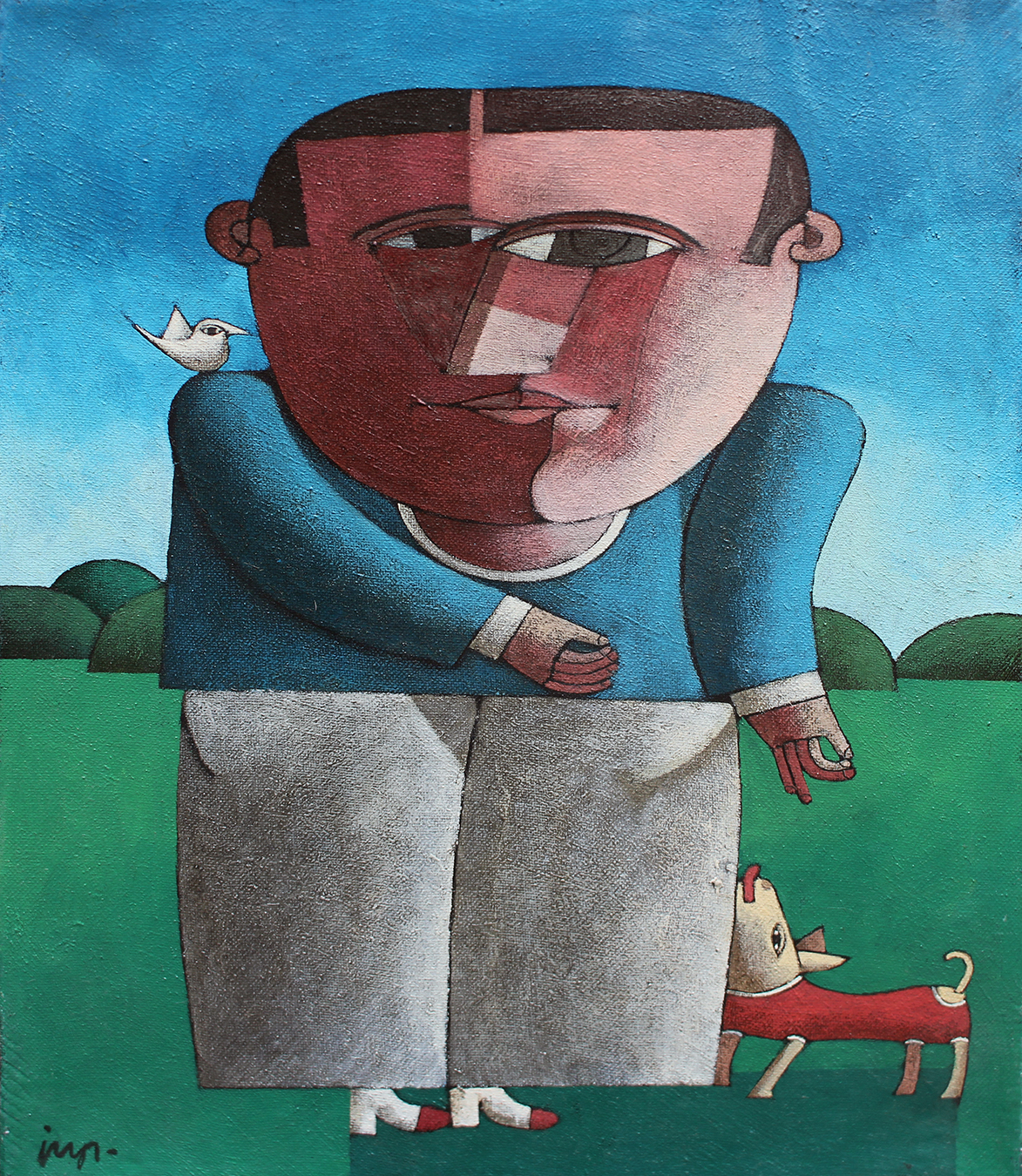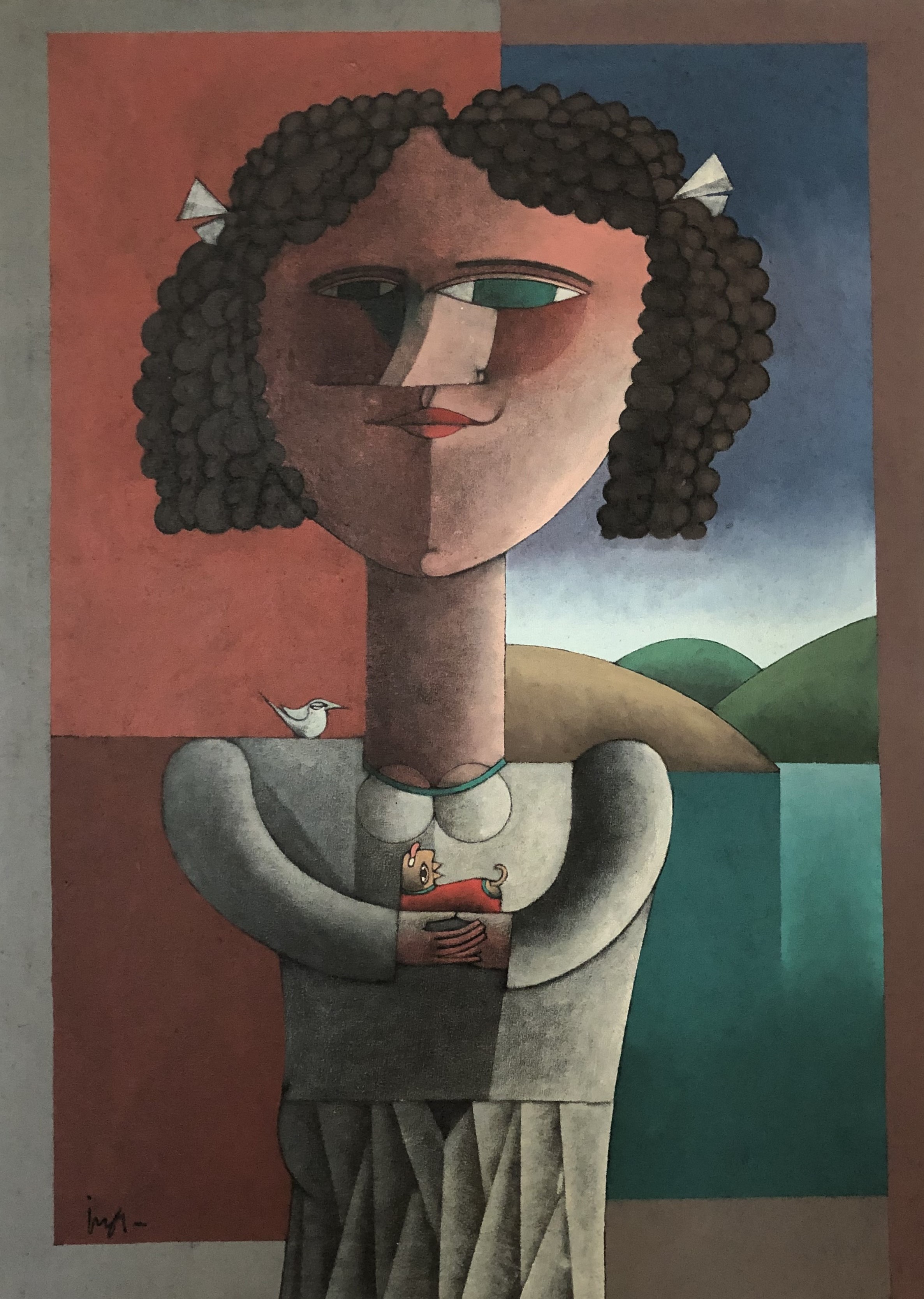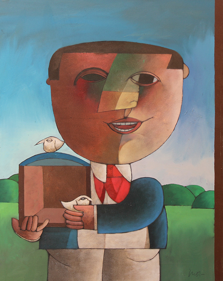 Inos Corradin - Menino e pomba - Óleo sobre tela - Assinado canto inferior direito - 70 x 50 cm.