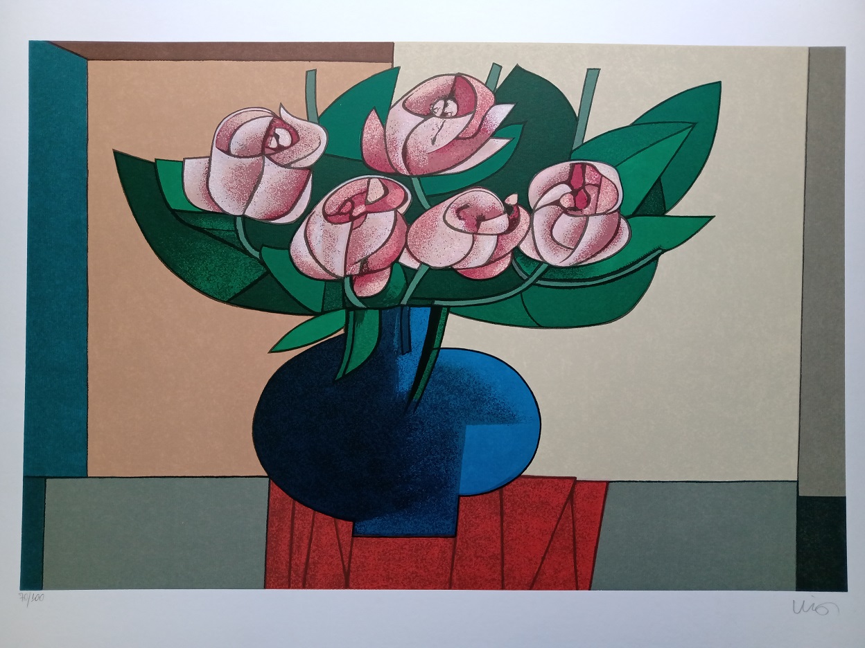 Inos Corradin - Vaso com flores - Serigrafia - 46X24 - Acid