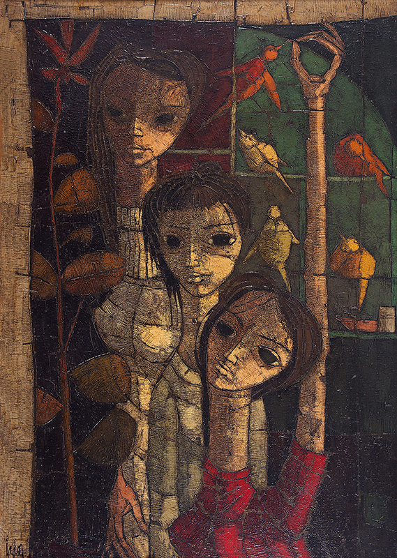 Inos Corradin - Menina e o passarinho - Óleo sobre tela - 73 alt x 50 larg - acie - Obra acompanha certificado emitido pelo artista (Década de 80).