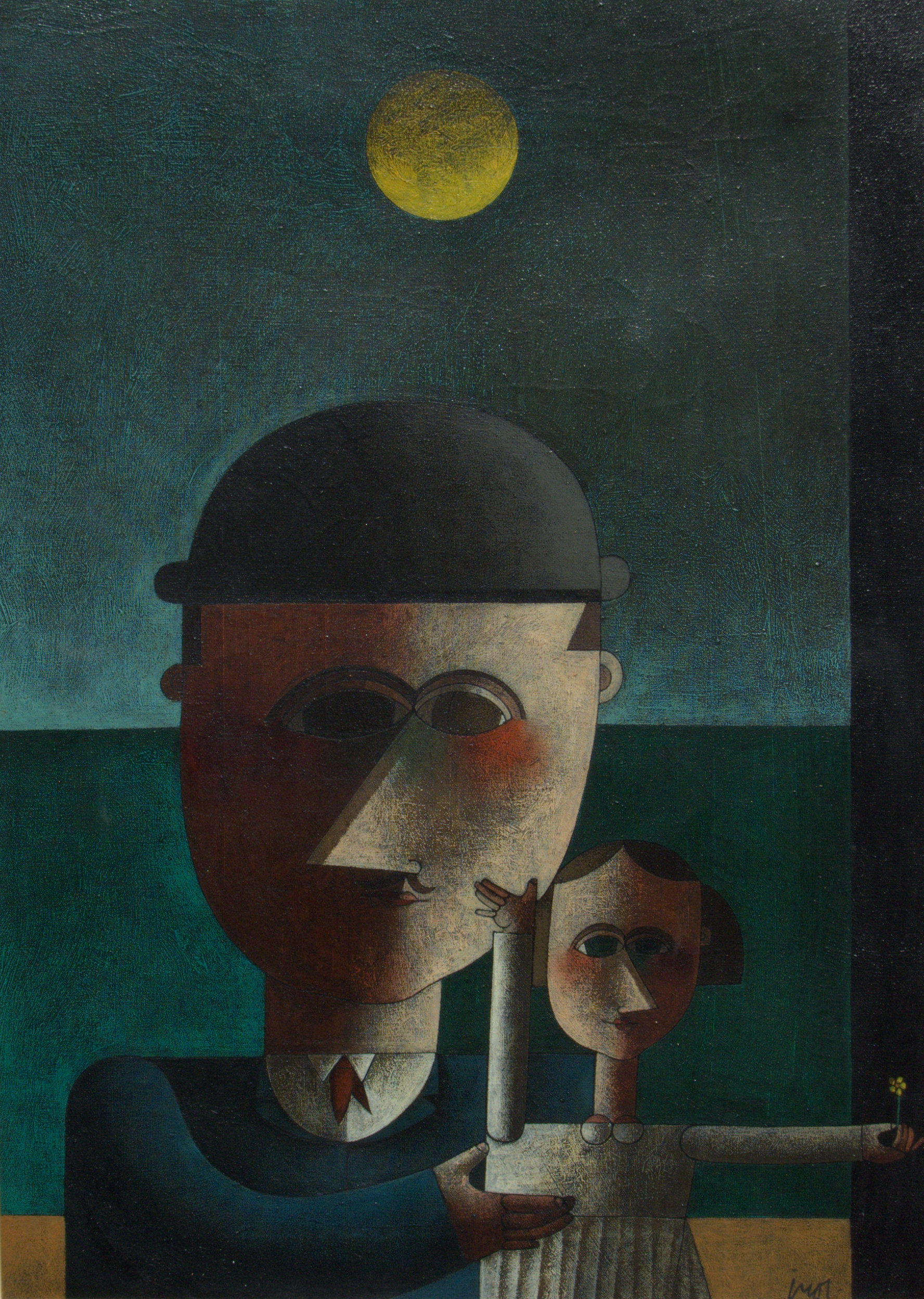 Inos Corradin - Mãe e filha - Óleo sobre tela - 110 alt x 50 larg - acid - Obra acompanha certificado emitido pelo artista (Década de 70).