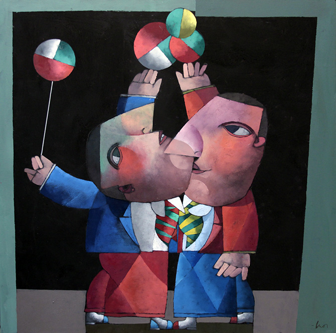 Inos Corradin - Equilibrista com fundo amarelo - Óleo sobre tela - 70 alt x 50 larg - acid e verso