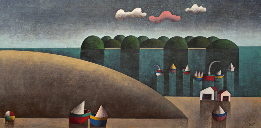 Inos Corradin - Marinha com Barcos - Giclee sobre Tela - 50 x70