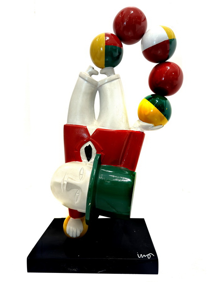Inos Corradin - Equilibrista - Escultura em Terracota - 28cm Alt - Base em Madeira