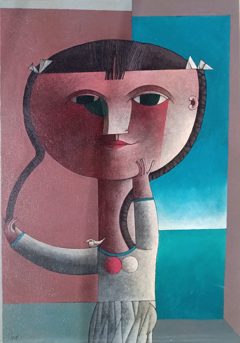 Inos Corradin - Menino e pomba - Óleo sobre tela - Assinado canto inferior direito - 70 x 50 cm.