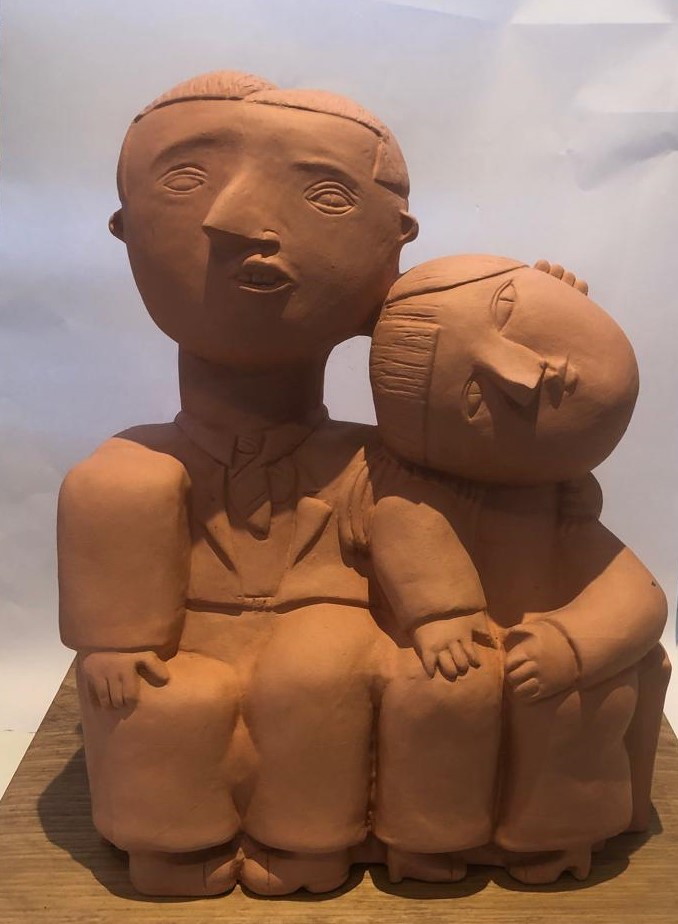 Inos Corradin - Equilibrista - Escultura em Terracota - 28cm Alt - Base em Madeira
