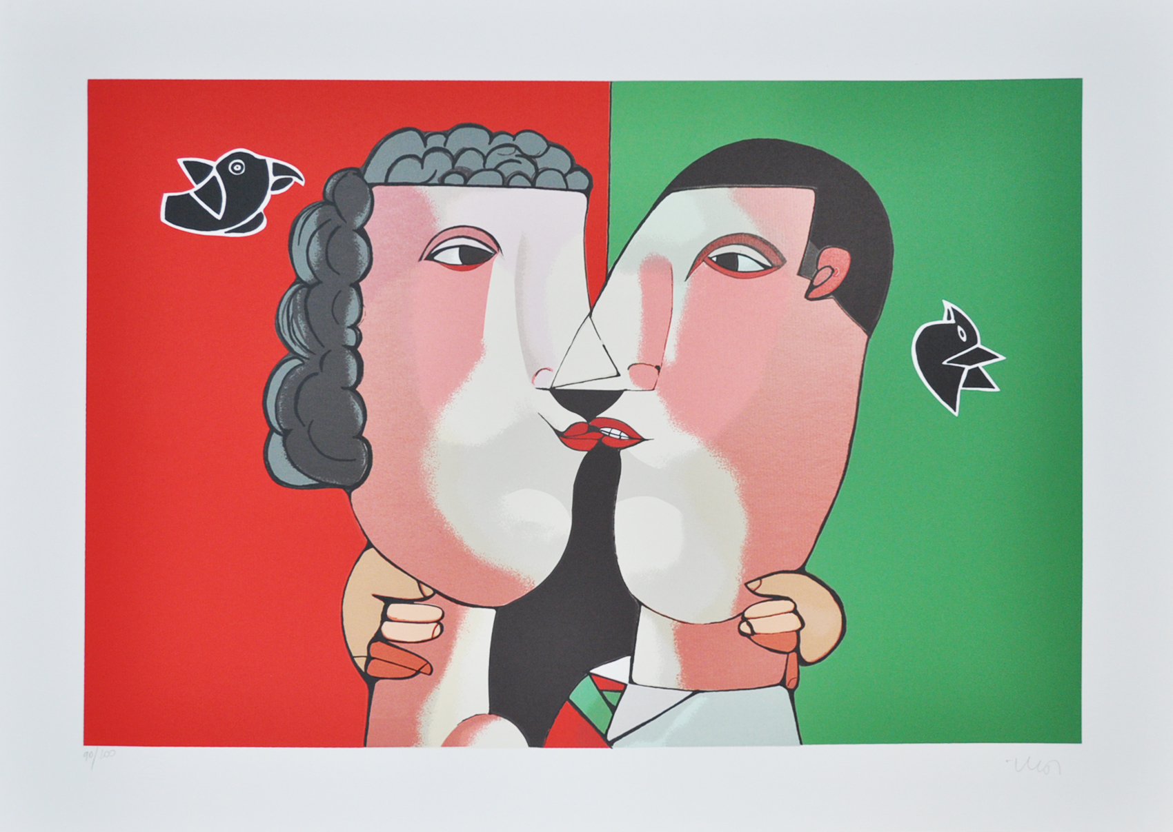 INOS CORRADIN - Os amantes - Óleo Sobre Tela - Ass.inf.dir, Ass.tit. no verso - 70 x 50