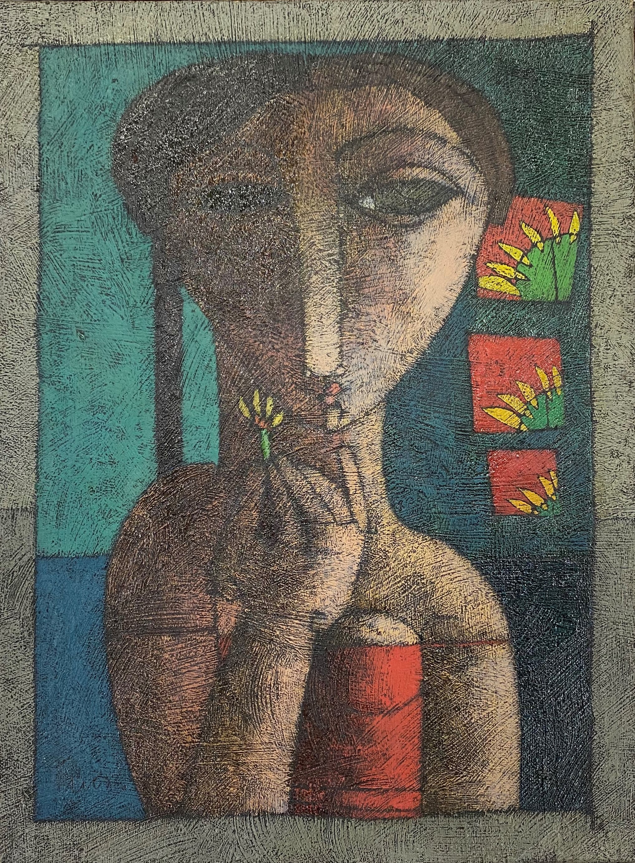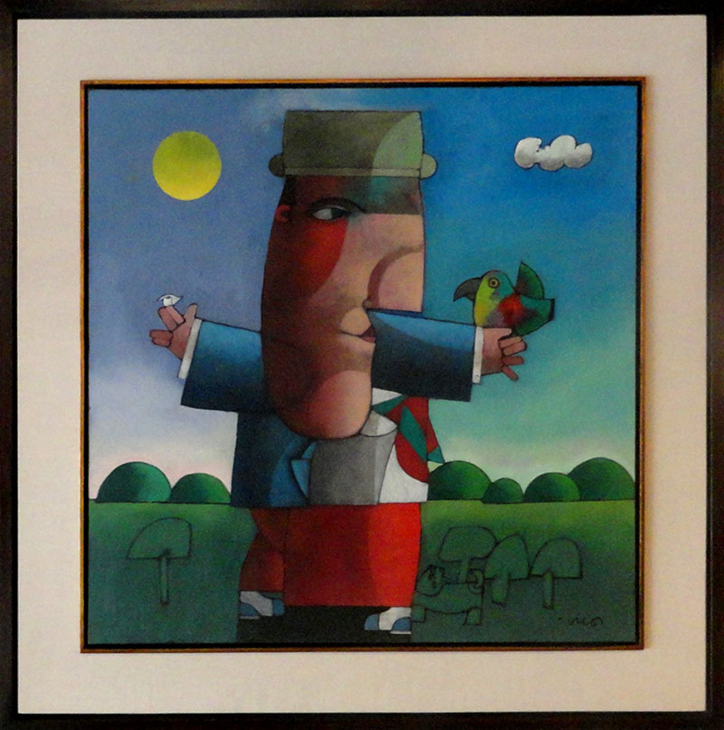 Inos Corradin - Menino e pomba - Óleo sobre tela - Assinado canto inferior direito - 70 x 50 cm.