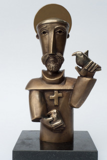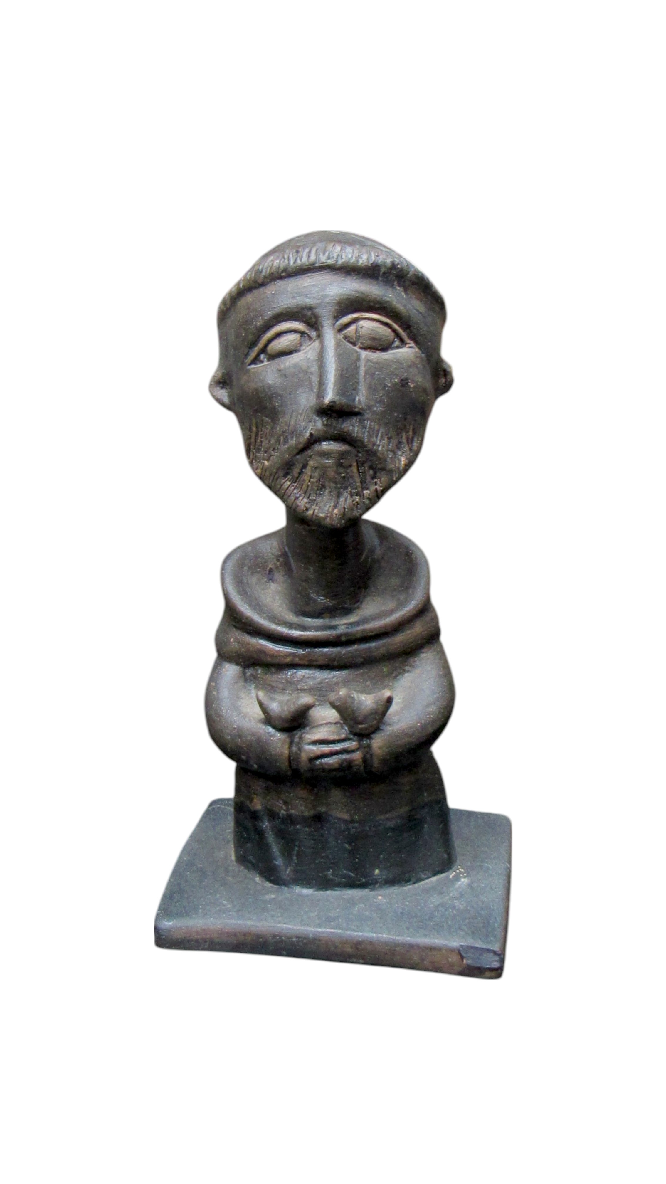 Inos Corradin - São Francisco - Escultura em Terracota - 25cm Alt - Base em Madeira