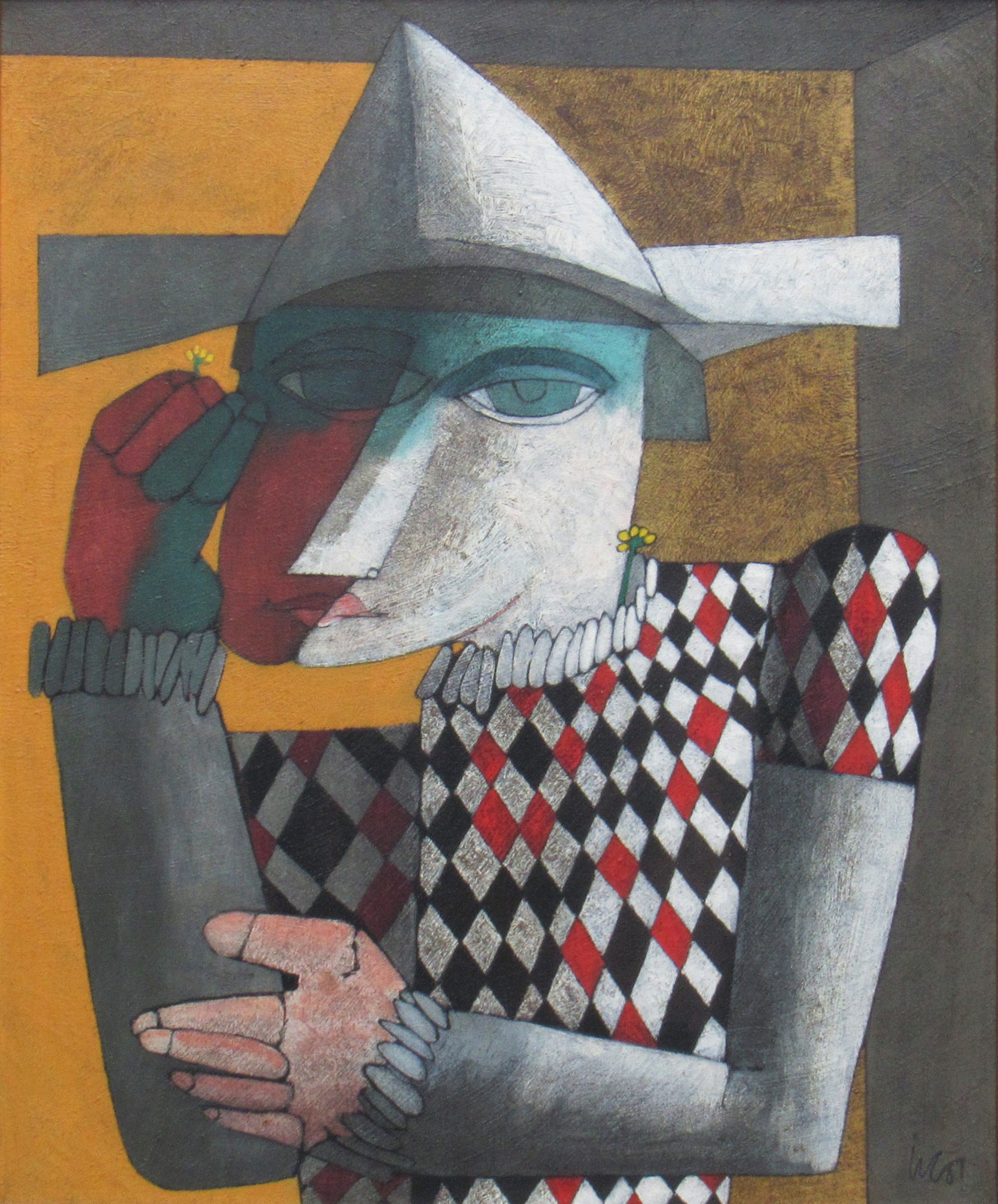 Inos Corradin - Equilibrista com fundo amarelo - Óleo sobre tela - 70 alt x 50 larg - acid e verso