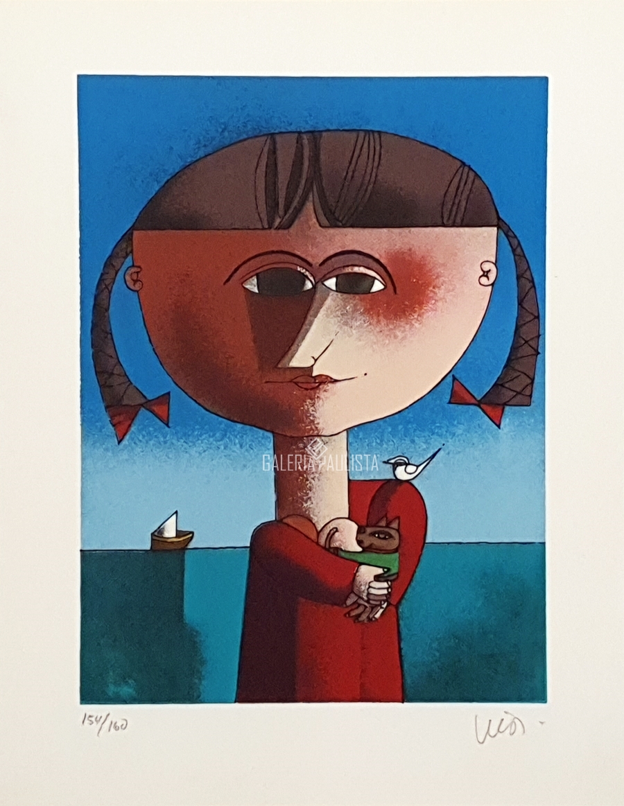 Inos Corradin - Menina e o passarinho - Óleo sobre tela - 73 alt x 50 larg - acie - Obra acompanha certificado emitido pelo artista (Década de 80).