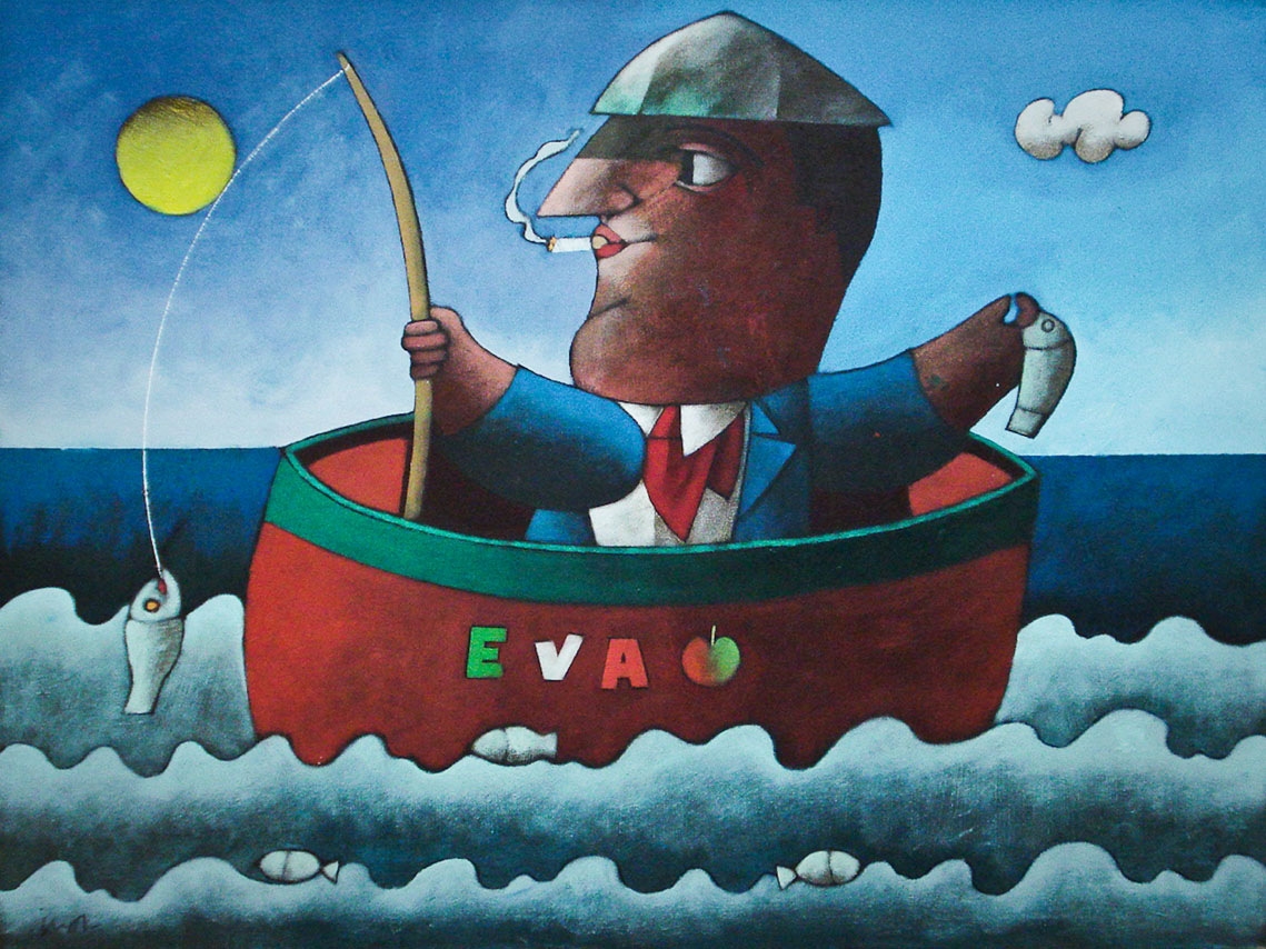 O torcedor - Inos Corradin - 80 x 60 - cid - Reproduzido à página 19 do livro " O Ilusionista na estrada" de Jacob Klintowitz