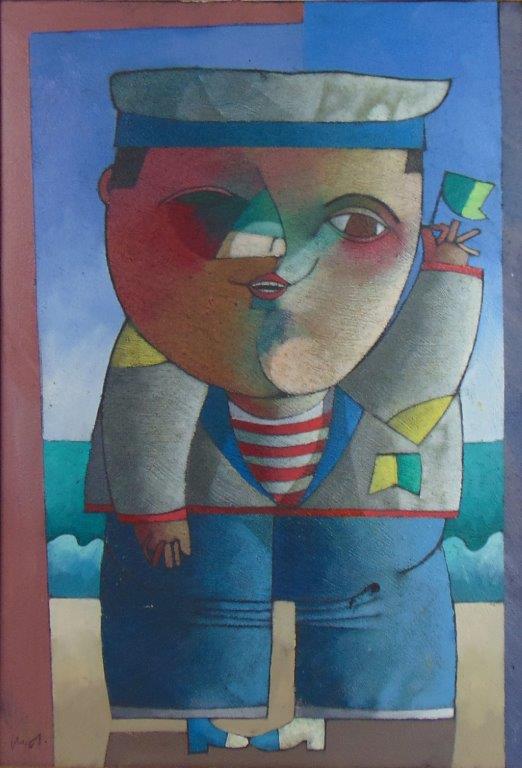 Inos Corradin - Menino na Losa - Óleo sobre tela - 100 alt x 37 larg - acid - Obra acompanha certificado emitido pelo artista.