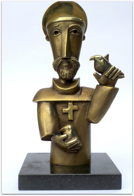 Inos Corradin - São Francisco - Escultura em Terracota - 25cm Alt - Base em Madeira