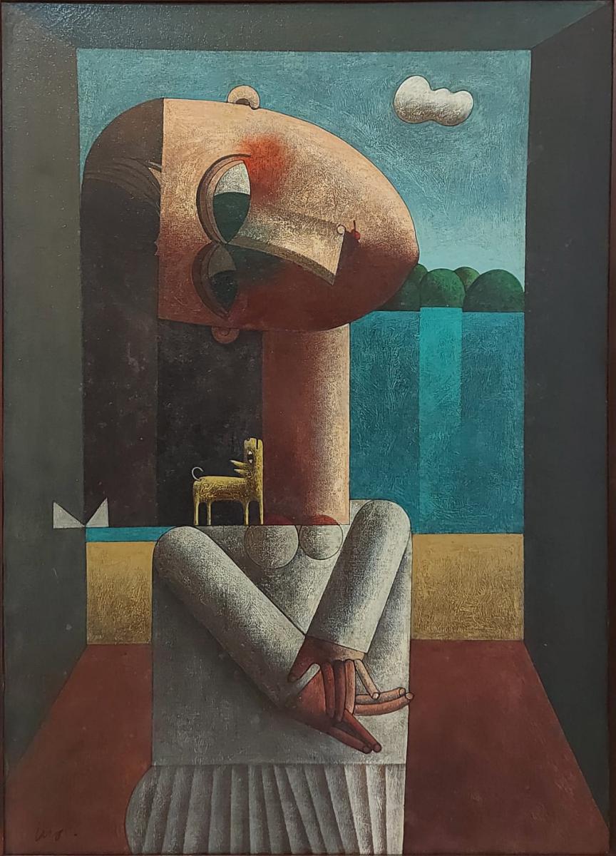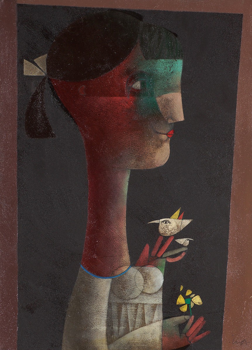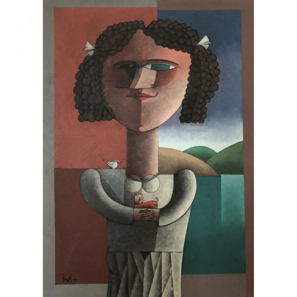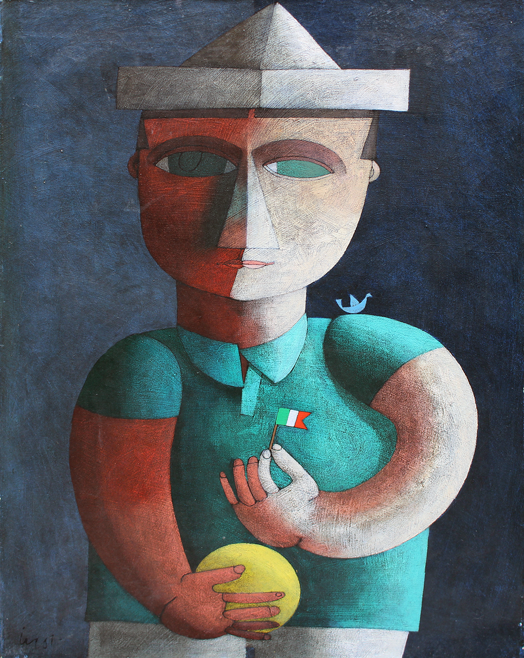 Inos Corradin - Menino e pomba - Óleo sobre tela - Assinado canto inferior direito - 70 x 50 cm.