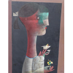 Inos Corradin acrilico sobre tela 80 x 60cm intitulada "A Máscara Veneziana" ass. CIE e verso.
